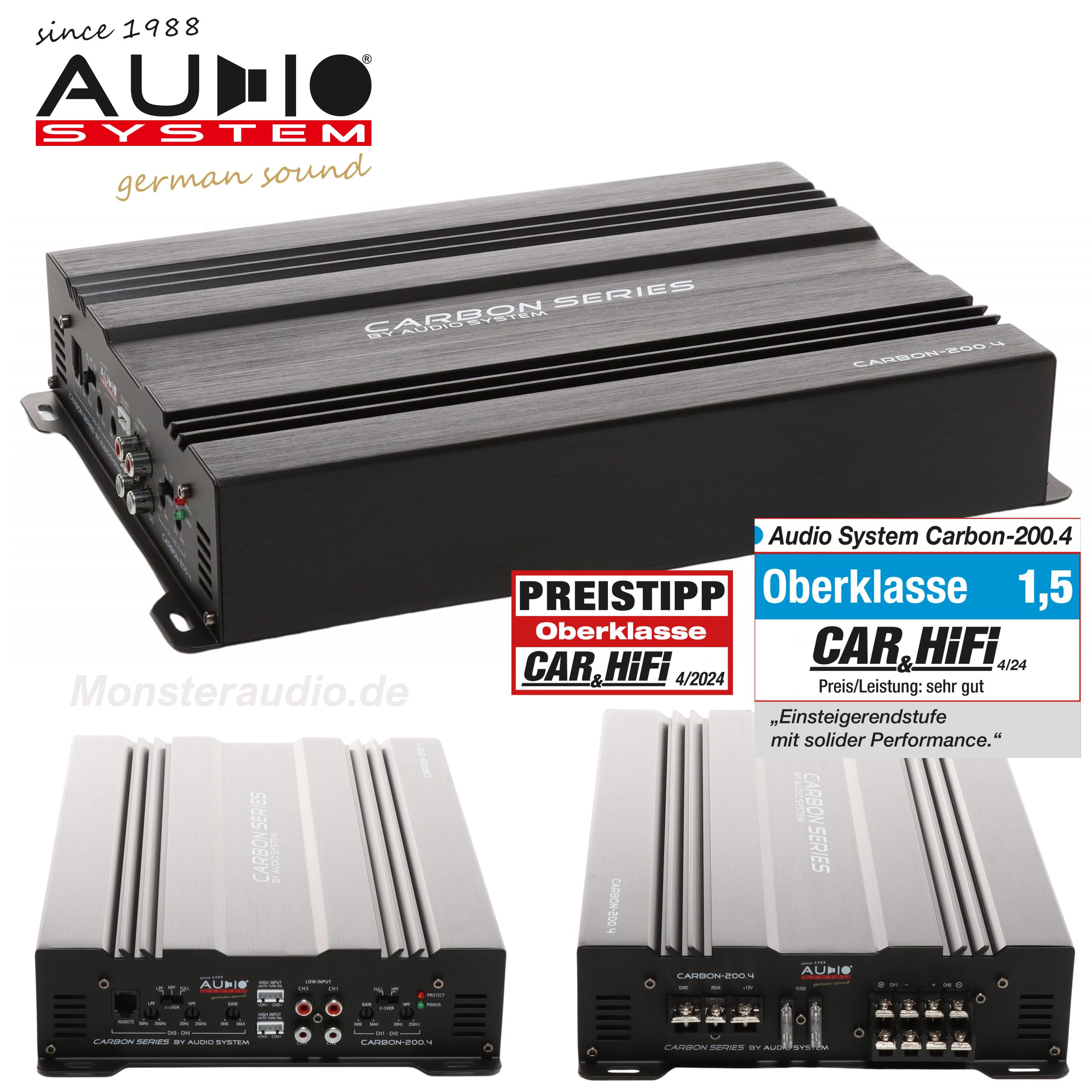 RMS Leistung an 2 Ohm Stereo: 4 x 80 Watt