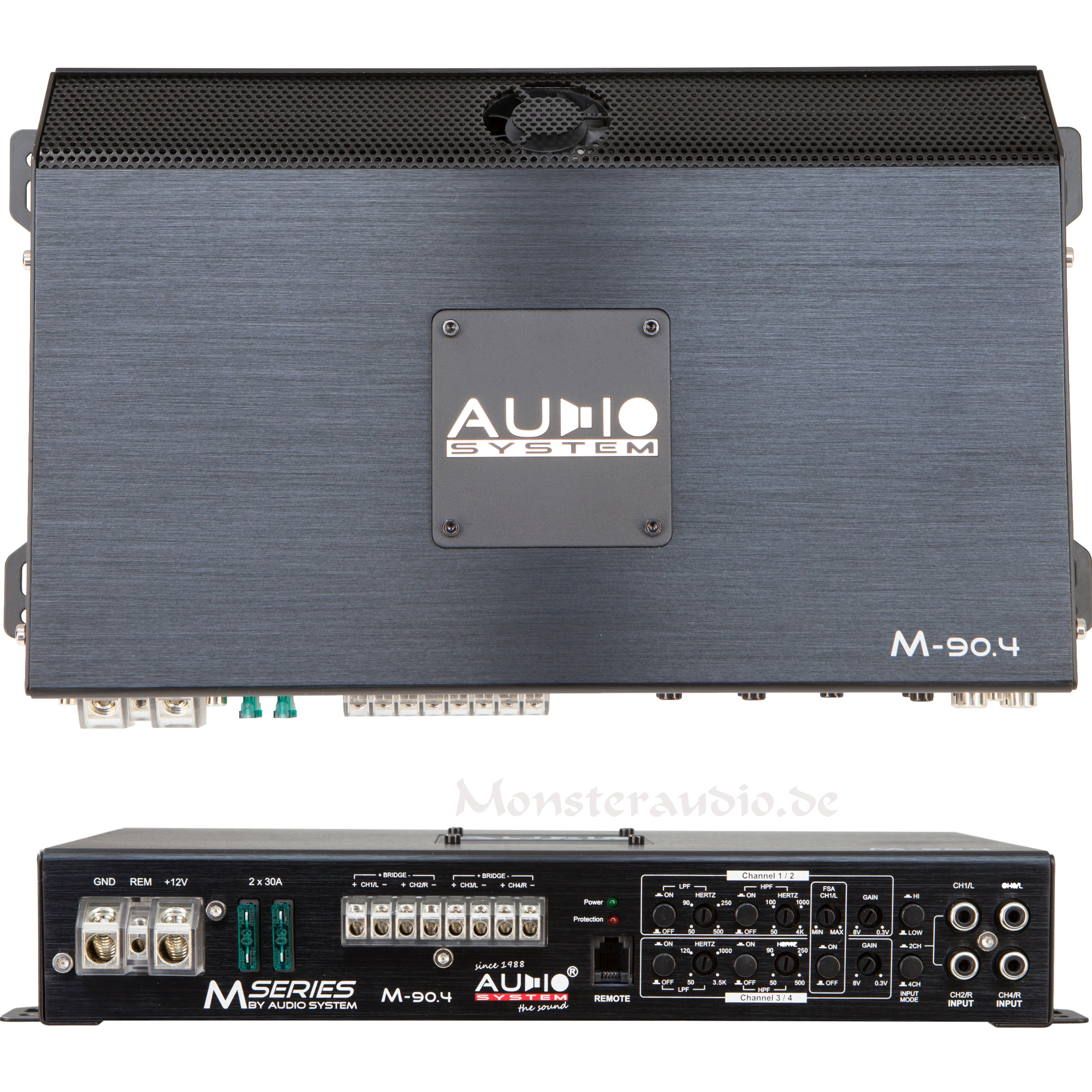 RMS Leistung an 4 Ohm Stereo: 4 x 90 Watt