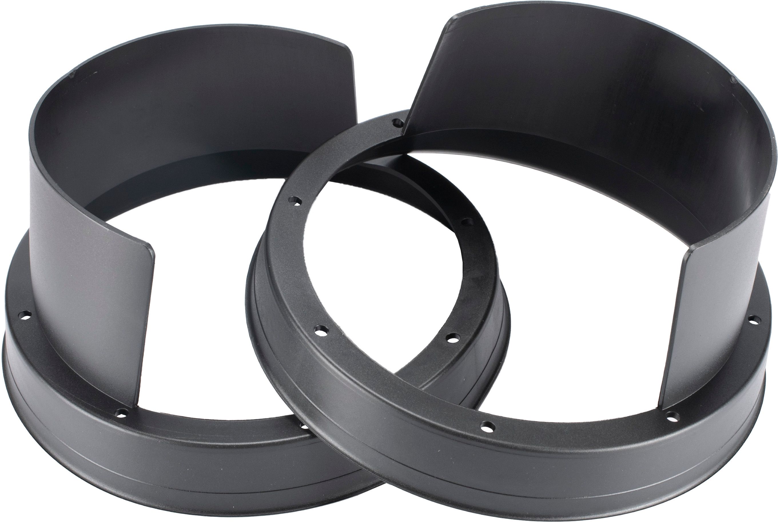 Gegen solche Akustikprobleme helfen „Lautsprecher-Manschetten“, die gleich mehrere Funktionen haben: Die aus sehr flexiblem Silikon gefertigten, tiefgezogenen Ringe sind eine Art Schallwanddichtung, Schalltrichter und Vibrationsdämpfer in einem. Die Verwendung ist einfach und die Wirkung verblüffend: Die flexible Konstruktion wird zwischen Lautsprecher und Adapterring bzw. Öffnung angebracht. Falls notwendig, kann das Material aus Silikon in Form geschnitten werden, damit es sich perfekt an die umliegenden Flächen anschmiegt. Gegenüber der hinteren Öffnung oder in die Manschette wird der beiliegende Noppenschaumstoff angebracht, der zusätzlich für eine weitere Resonanzdämpfung sorgt. Das Ergebnis ist eine bessere Klangentfaltung und sattere Basswiedergabe.