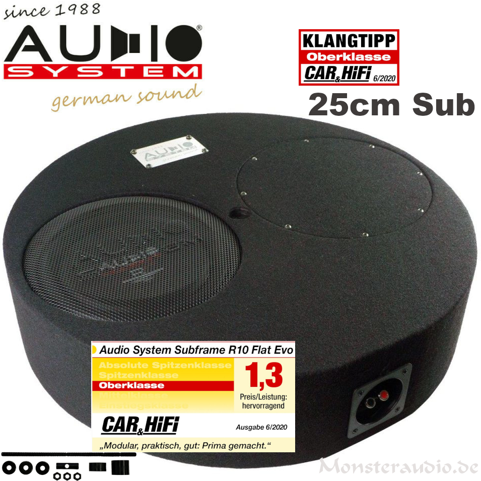 Subframe R10 FLAT EVO2 mit 1 x 25cm Sub, 300/400 Watt RMS/MAX, 4 Ohm, 58x13,5cm, 274 Euro