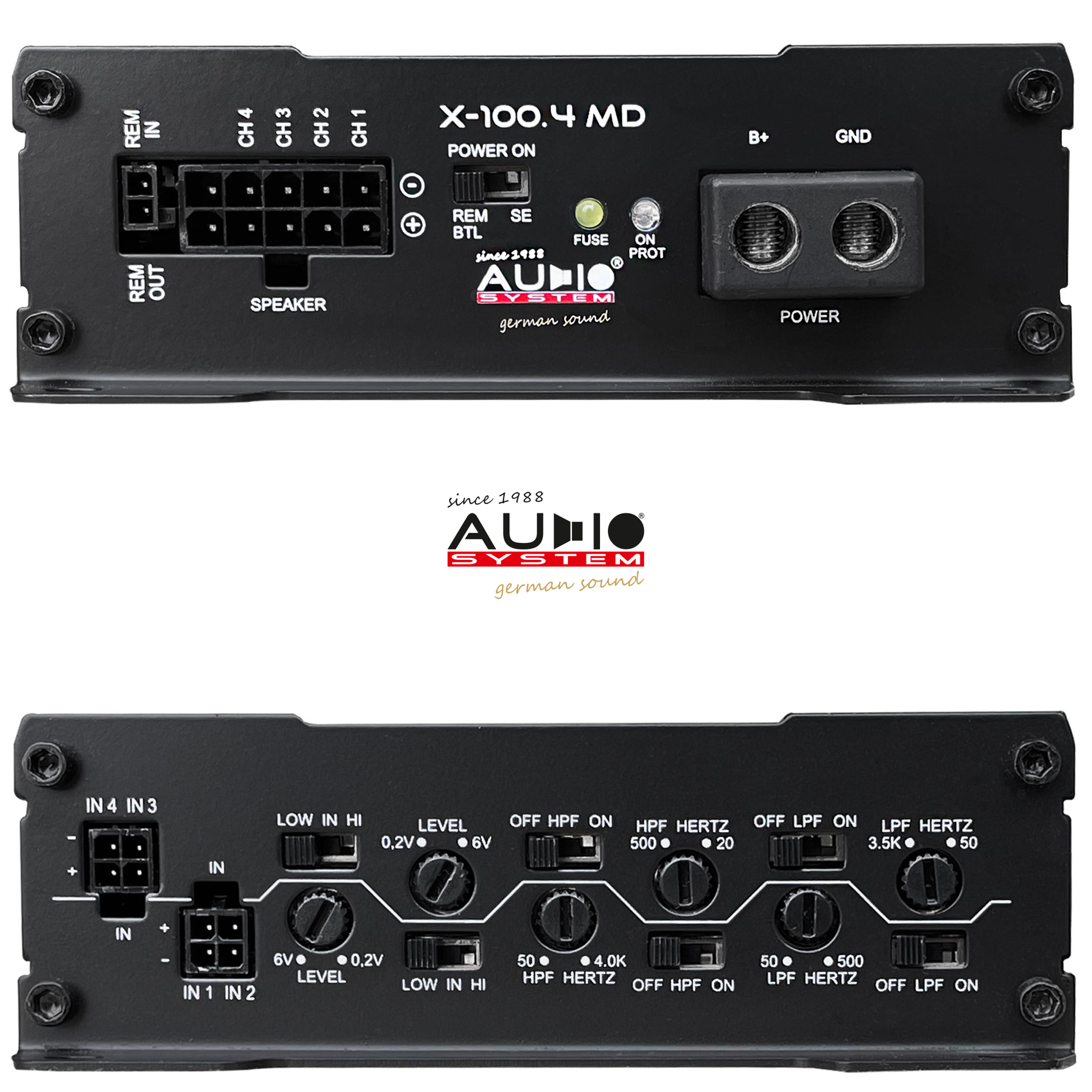 RMS Leistung an 4 Ohm Stereo: 4 x 100 Watt