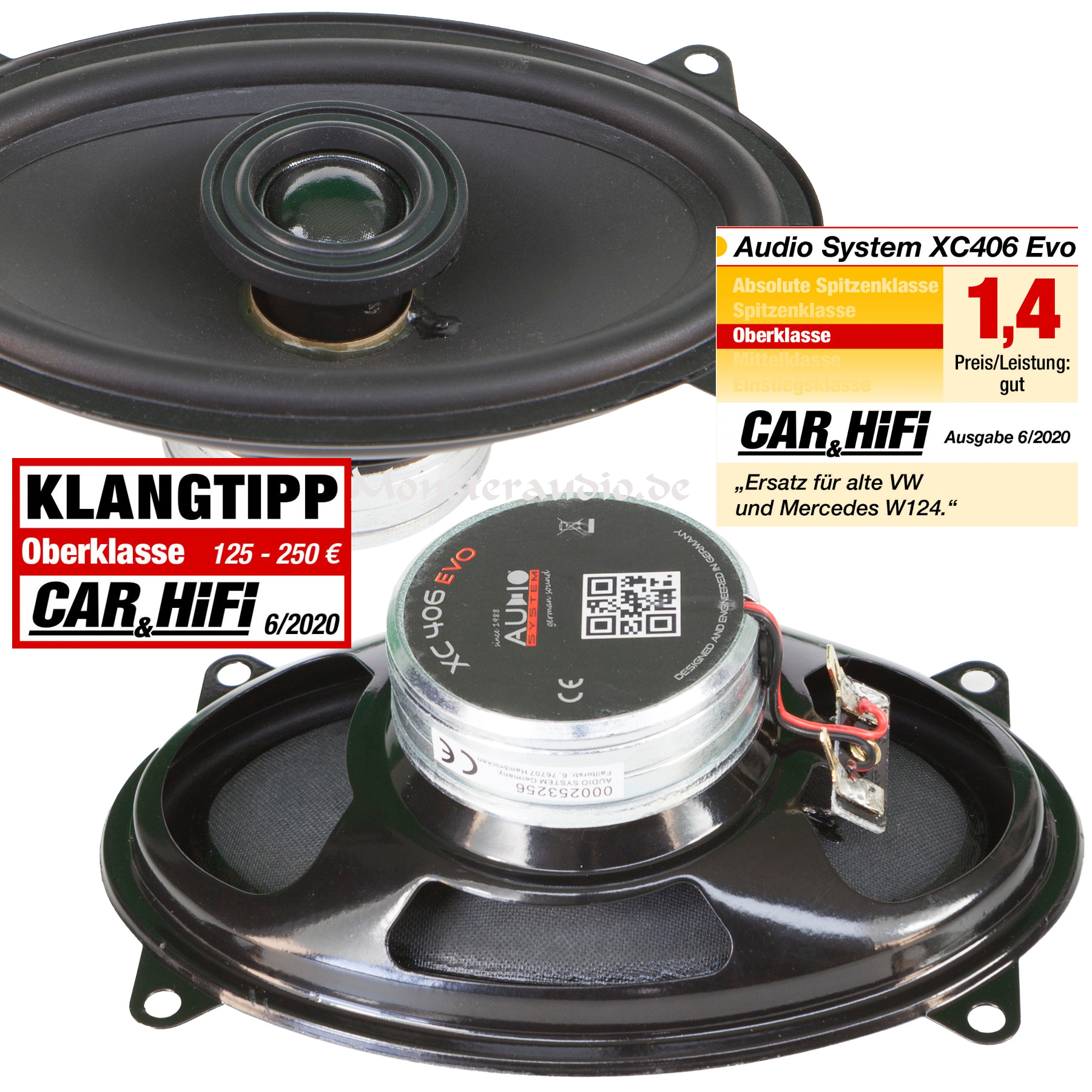 Die neuesten Lautsprecher der XC-Serie sind mit großen 22mm Hochtöner und Nomex-Spider ausgestattet. Die Lautsprecher haben eine sehr stabile gepresste Papier-Membran und einen Neodym-Magnet. Die Impedanz wurde auf 3 Ohm gesenkt, um mehr Leistung vom Radio/Verstärker zu bekommen und dennoch einen klaren und direkten Klang ohne schnelle Verzerrungen zu ermöglichen.