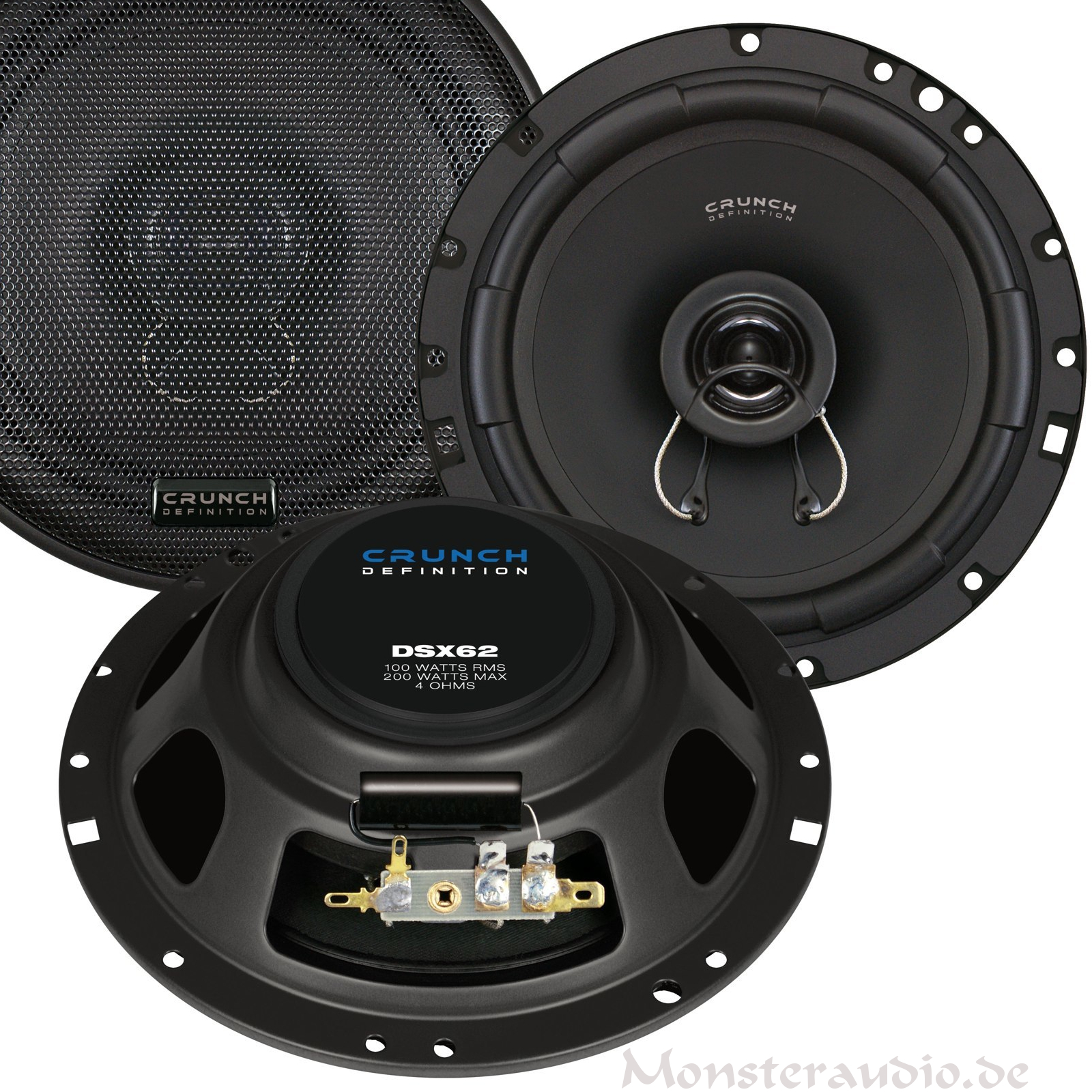 Leistung je: 100/200 Watt RMS/MAX, Impedanz 4 Ohm