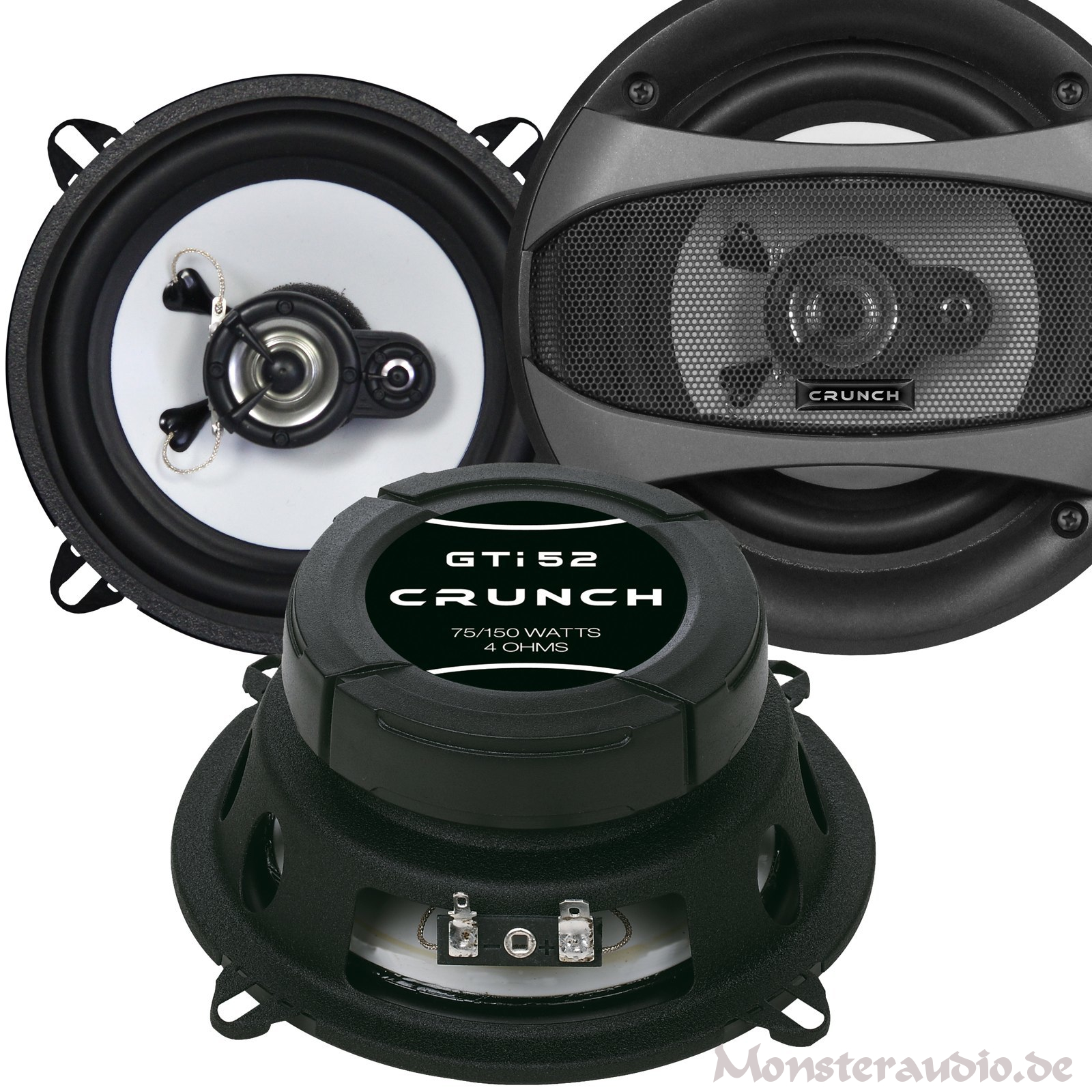 Mit den neuen Lautsprechern der GTi Serie bietet Crunch die idealen Spielpartner der weißen GTi Verstärker. Nicht nur optisch passen die Speaker mit ihren schicken weißen PP-Membranen in das Gesamtkonzept, auch in Sachen Preis/Leistung überzeugt die Serie auf ganzer Linie. Dank der geringen Einbautiefe und den genormten Eurokörben sind die Lautsprecher auch überall leicht verbaubar. Die GTi Kompos bieten dazu noch hochwertige 12dB Frequenzweichen mit Überlastschutz sowohl im Bass- als auch im Hochton-Zweig, welche den 25 mm Gewebehochtöner optimal abtrennen und eine Hochton-Pegelanpassung in 3 Stufen ermöglichen.