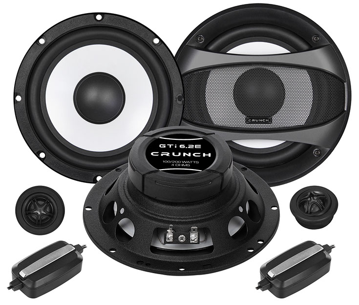 Mit den Lautsprechern der GTi SERIE bietet CRUNCH die idealen Spielpartner der weißen GTi Verstärker. Nicht nur optisch passen die Speaker mit ihren schicken weißen PP-Membranen in das Gesamtkonzept, auch in Sachen Preis/Leistung überzeugt die Serie auf ganzer Linie. Dank der geringen Einbautiefe und den genormten Eurokörben sind die Lautsprecher auch überall leicht verbaubar. Die GTi Kompos bieten dazu noch hochwertige 12 dB Frequenzweichen mit Überlastschutz sowohl im Bass- als auch im Hochton-Zweig, welche den 25 mm Gewebehochtöner optimal abtrennen und eine Hochton-Pegelanpassung in 3 Stufen ermöglichen. Ergänzend sind die GTi6.2E und GTi5.2E Systeme mit einbaufreundlichen Kabelfrequenzweichen erhältlich.