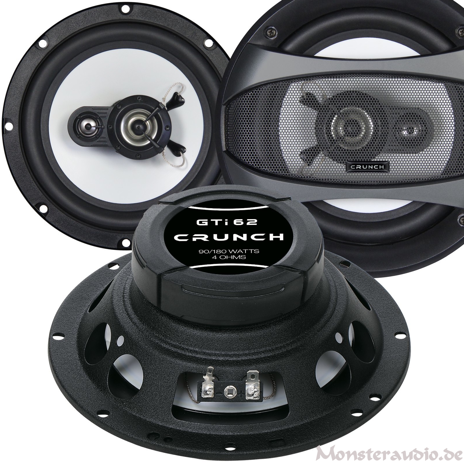 Mit den neuen Lautsprechern der GTi Serie bietet Crunch die idealen Spielpartner der weißen GTi Verstärker. Nicht nur optisch passen die Speaker mit ihren schicken weißen PP-Membranen in das Gesamtkonzept, auch in Sachen Preis/Leistung überzeugt die Serie auf ganzer Linie. Dank der geringen Einbautiefe und den genormten Eurokörben sind die Lautsprecher auch überall leicht verbaubar. Die GTi Kompos bieten dazu noch hochwertige 12dB Frequenzweichen mit Überlastschutz sowohl im Bass- als auch im Hochton-Zweig, welche den 25 mm Gewebehochtöner optimal abtrennen und eine Hochton-Pegelanpassung in 3 Stufen ermöglichen.