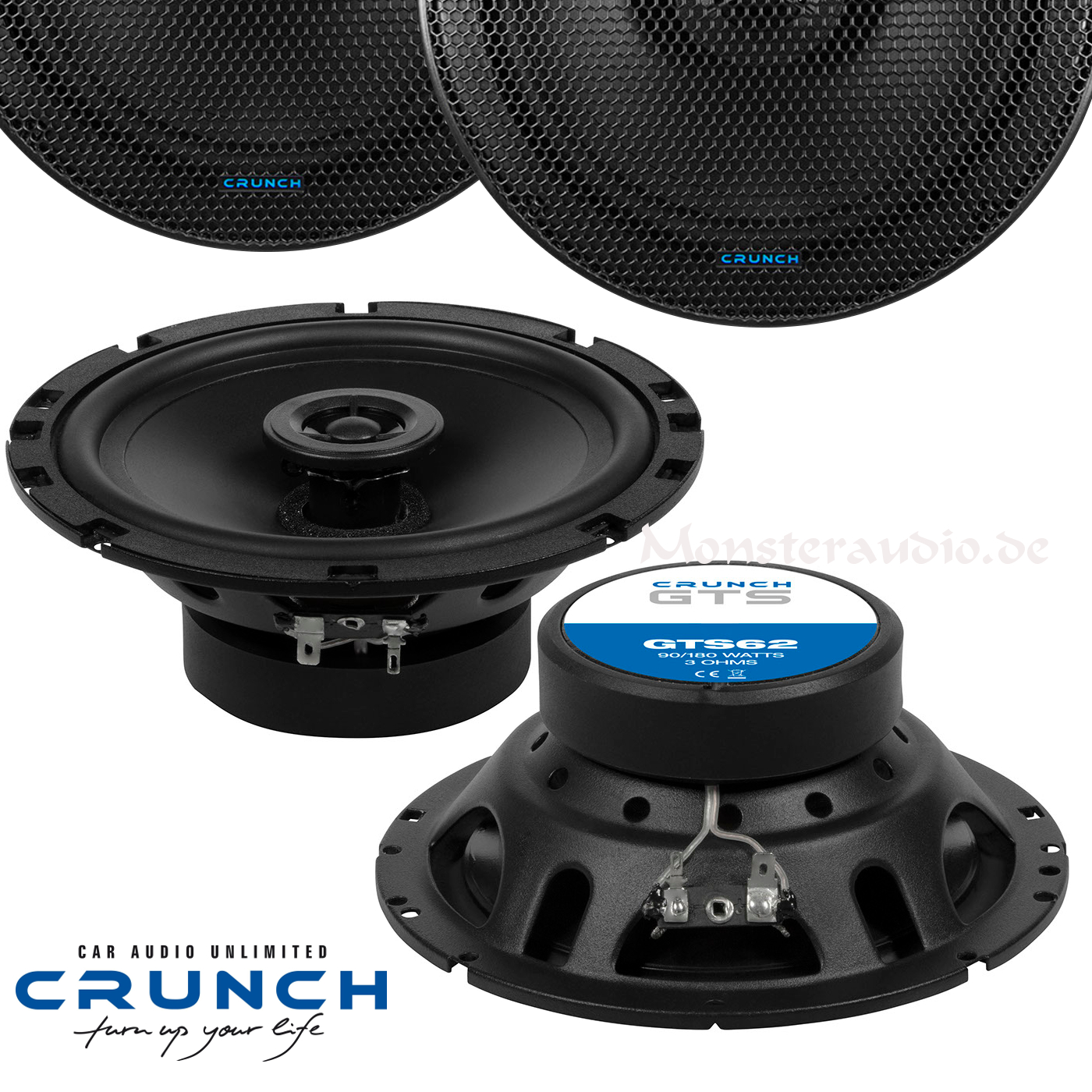 Die gute Performance kommt unter anderem durch die Verwendung von teuren Y30 Magneten, die selbst bei kleinerer Größe manch optisch größere Exemplare in der Leistung übertreffen. Auch ansonsten sind die GTS-Lautsprecher auf der Höhe der Zeit: So werden die Zentrierspinnen zusätzlich belüftet und bei den Kompos sorgt eine zusätzliche Polkernbohrung für noch bessere Kühlung. Bei der Membran entschieden sich die Entwickler für eine Polypropylen-Version, die klanglich die besten Ergebnisse liefert. Ein weiteres Highlight ist der kompakte, 20 mm große Seidenhochtöner, der bis weit über 20.000 Hz sehr linear spielt und wunderbar auflöst. Durch den linearen Frequenzgang der Lautsprecher ist es möglich, sehr kleine Kabelweichen einzusetzen, die für den Hoch- und Tieftöner getrennt ausgeführt sind. Der Vorteil hierbei ist die denkbar einfache Installation. Die CRUNCH GTS SERIE bietet Top Klang, guten Wirkungsgrad (auch durch die 3 Ohm Impedanz) und einfache Montage!
