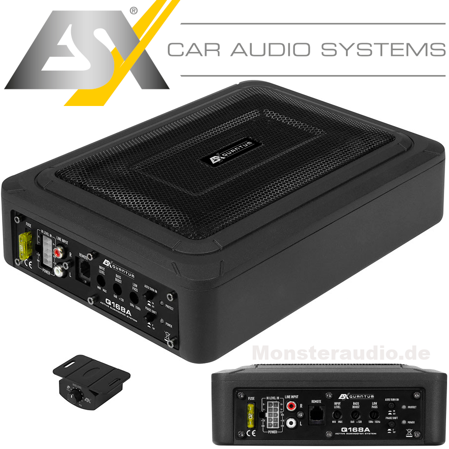 Das sehr schlank aufgebaute Q168A System ist mit einem 15 x 20 cm Spezialwoofer und einem echtem Class A/B Verstärker ausgestattet. Der aus Aluguss bestehende Kühlkörper mit hervorragenden Kühleigenschaften schützt den integrierten Verstärker vor Überhitzung. Optimal für Kleinwagen, Sportcoupés und Cabrios, findet das System überall einen Platz, sei es unter oder hinter dem Sitz oder in einem Staufach im Kofferraum.