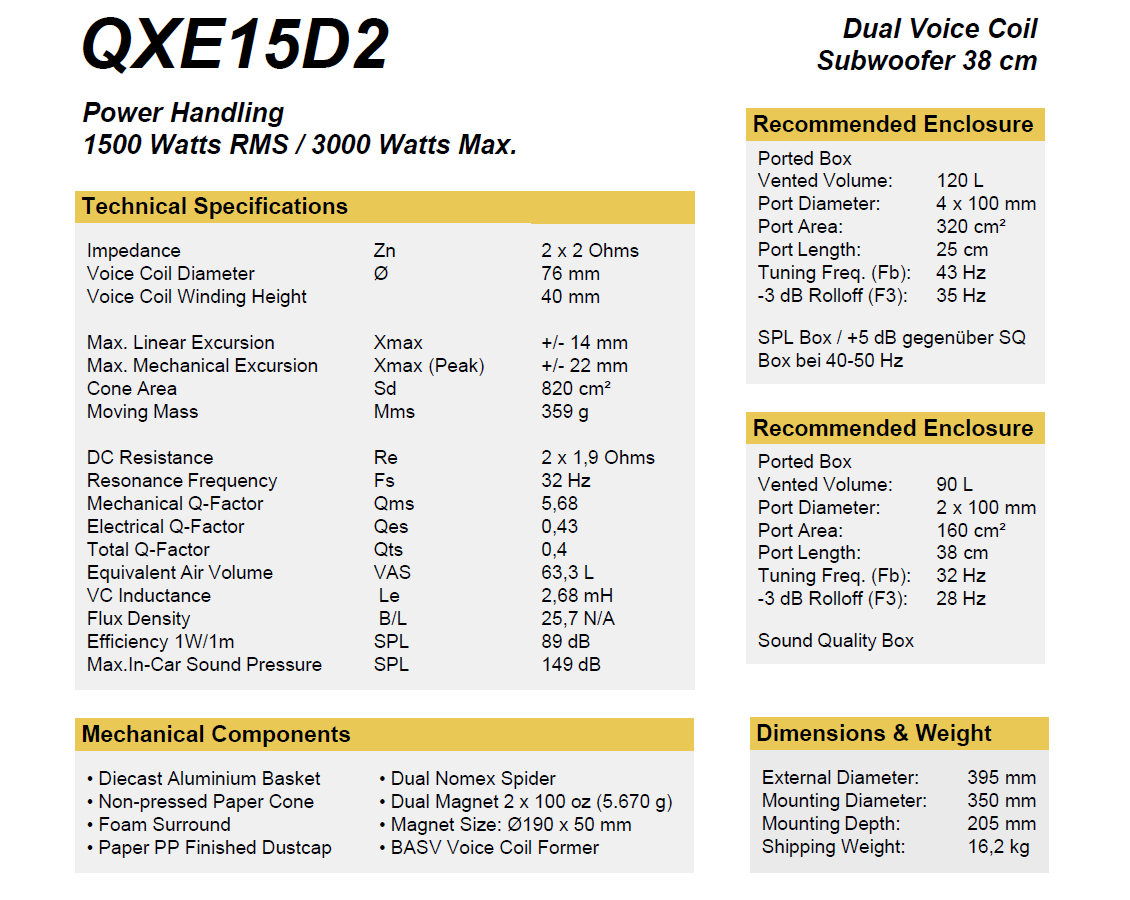 Belastbarkeit 1500/3000 Watt RMS/max.