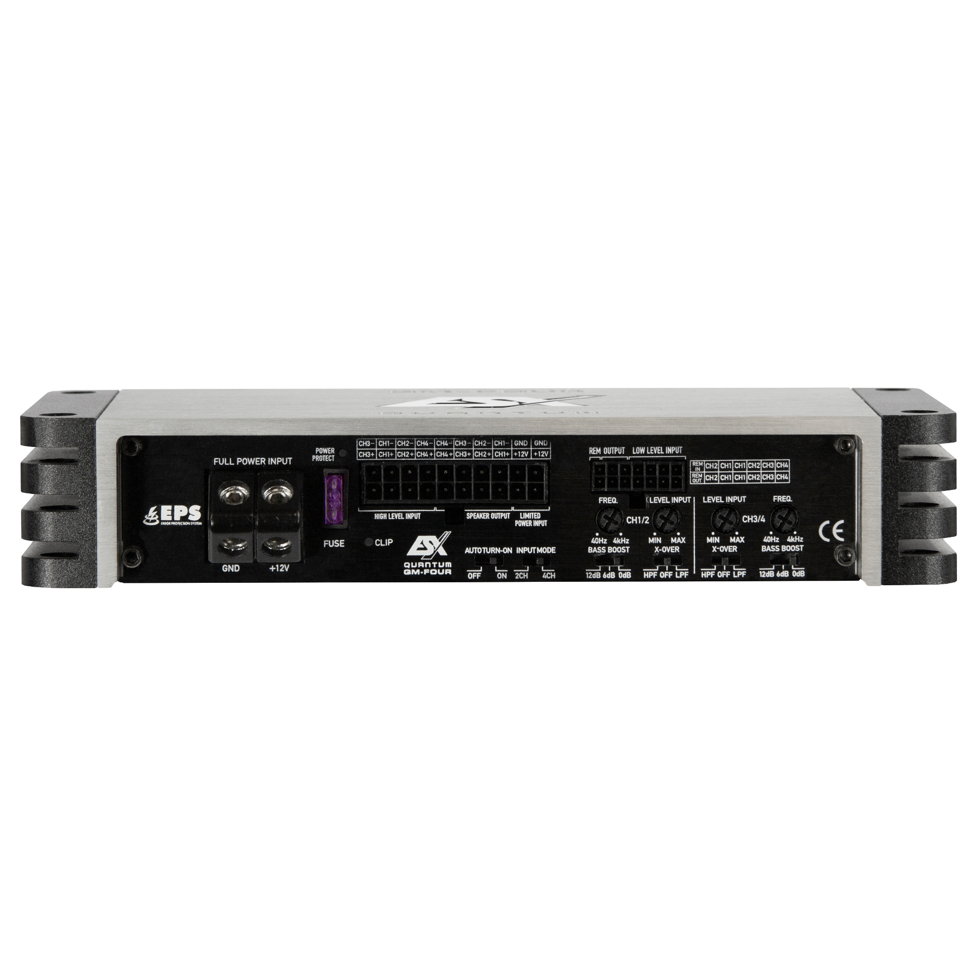 Die in etwa handtellergroße 2-Kanal Mini-Endstufe QUANTUM QM-TWO sorgte gleich nach der Vorstellung bei ESX-Fans und Kennern der Car Hifi Szene für Verblüffung. Das kleine Powerhouse mit satten 240 Watt RMS Leistung wurde sofort als Geheimtipp gehandelt. Nachdem letztes Jahr die verbesserte V2-Version mit sagenhaften 300 W RMS Leistung das nochmals toppte, legt ESX nun mit zwei weiteren Modellen in der QM-Klasse nach: Für 4- Kanal Anwendungen steht ab sofort die klangstarke Endstufe QM-FOUR bereit, wer einen separaten Subwoofer antreiben möchte, kann jetzt zum neuen Monoblock QM-ONE greifen. Beide Powerriegel leisten satte 360 Watt RMS und sind optisch perfekt aufeinander abgestimmt. In allen Modellen kommt moderne und effiziente Class D Technologie zum Einsatz, kombiniert mit EPS, Top-Features und perfekten Klangeigenschaften. Der QM-ONE Monoblock ist nicht nur optisch der perfekte Spielpartner passend zur QM-FOUR. Wenn zusätzlich ein separater Woofer befeuert werden soll, ist sein Einsatzgebiet klar definiert. Mit satten 360 Watt RMS an 2 Ω ist für ausreichend Dampf gesorgt, sogar bequem per Basspegel-Fernbedienung einstellbar.