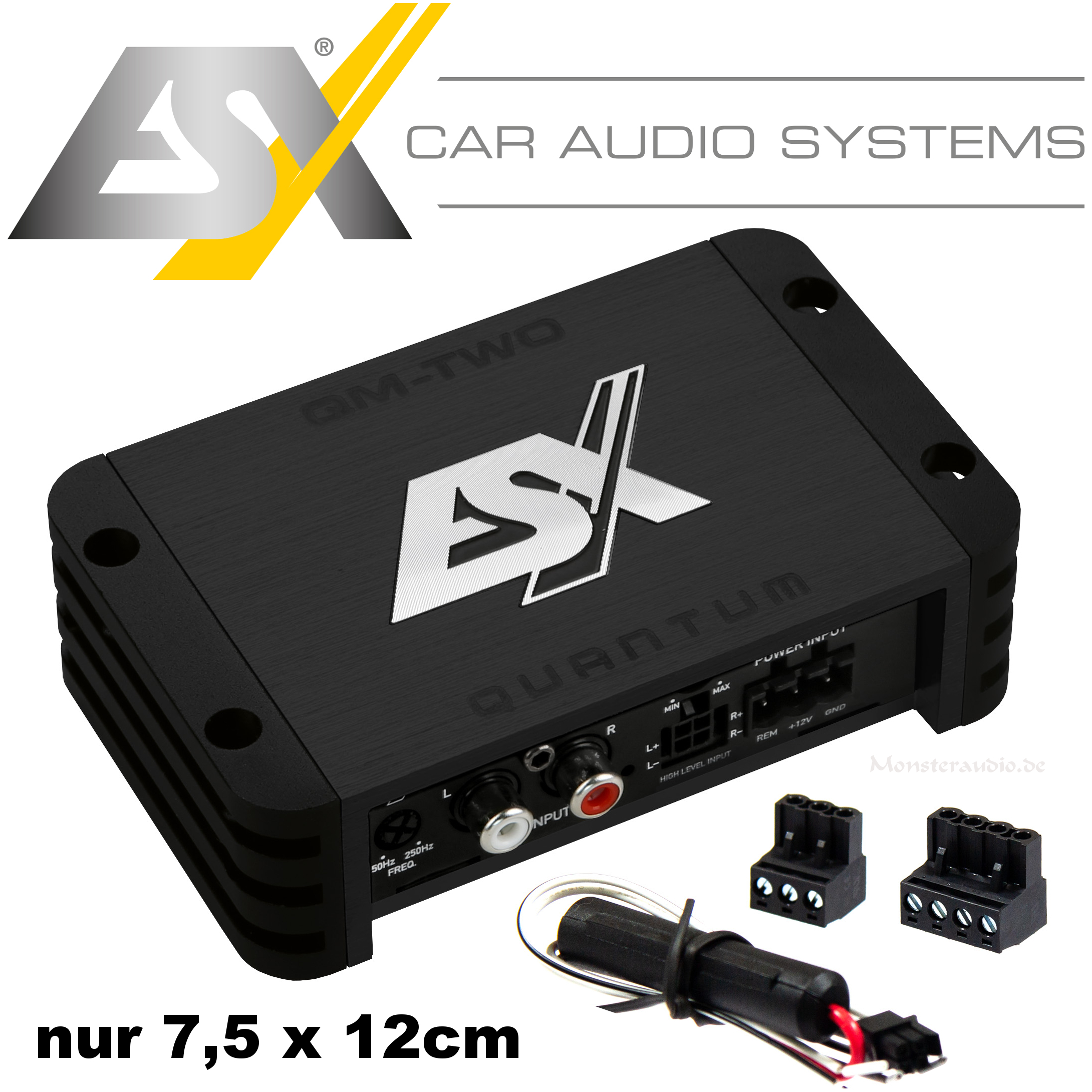 Die extrem kompakte Endstufe QUANTUM QM-TWO gehört seit langem zu den Top-Sellern im ESX Verstärker-Portfolio. Da die größeren QM und QL Modelle mittlerweile in schwarz erhältlich sind und begeisterte ESX Quantum Fans die kleine QM-TWO in derselben Optik zusammen installieren möchten, präsentieren wir jetzt die neue QM-TWOv3 als exklusive "Black Edition". Die Gründe für ihren Erfolg liegen sprichwörtlich "auf der Hand": Mit gerade einmal 7,5 x 12 cm ist diese kleine Class D Endstufe ein unglaublich starkes Kraftpaket im Miniaturformat, ideal für den Antrieb von vielen Lautsprechern bis 2 Ω.