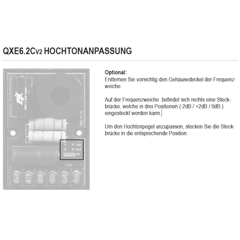 An den 12dB 2-Wege-Weichen können die Hochtöner nach Bedarf angepasst werden (-2dB / +2dB / 0dB ).
