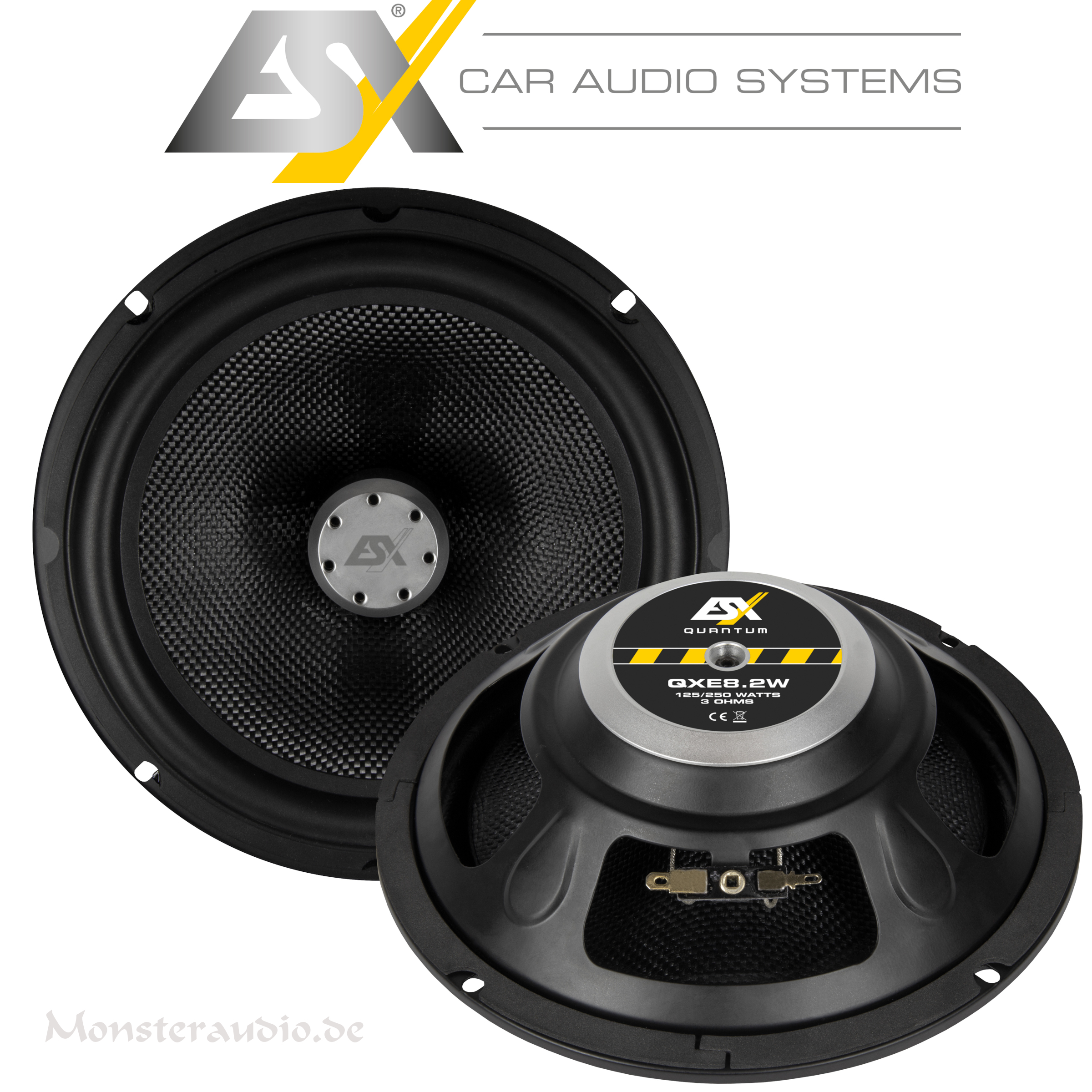 Immer häufiger passen nicht nur 16,5 cm Basslautsprecher in die vorderen Türen, sondern auch richtig große Chassis mit 20 cm Durchmesser. Da die einfache Faustformel “mehr Membranfläche = mehr Bass“ auch hier gilt, kann mit den neuen 8-Zoll ESX Tieftönern der QUANTUM QXE Serie aus den Türen schon richtig viel Bass geholt werden. Sie passen in gängige 20 cm Adapter für viele Automodelle, wie z.B. VW, Audi oder auch Tesla.