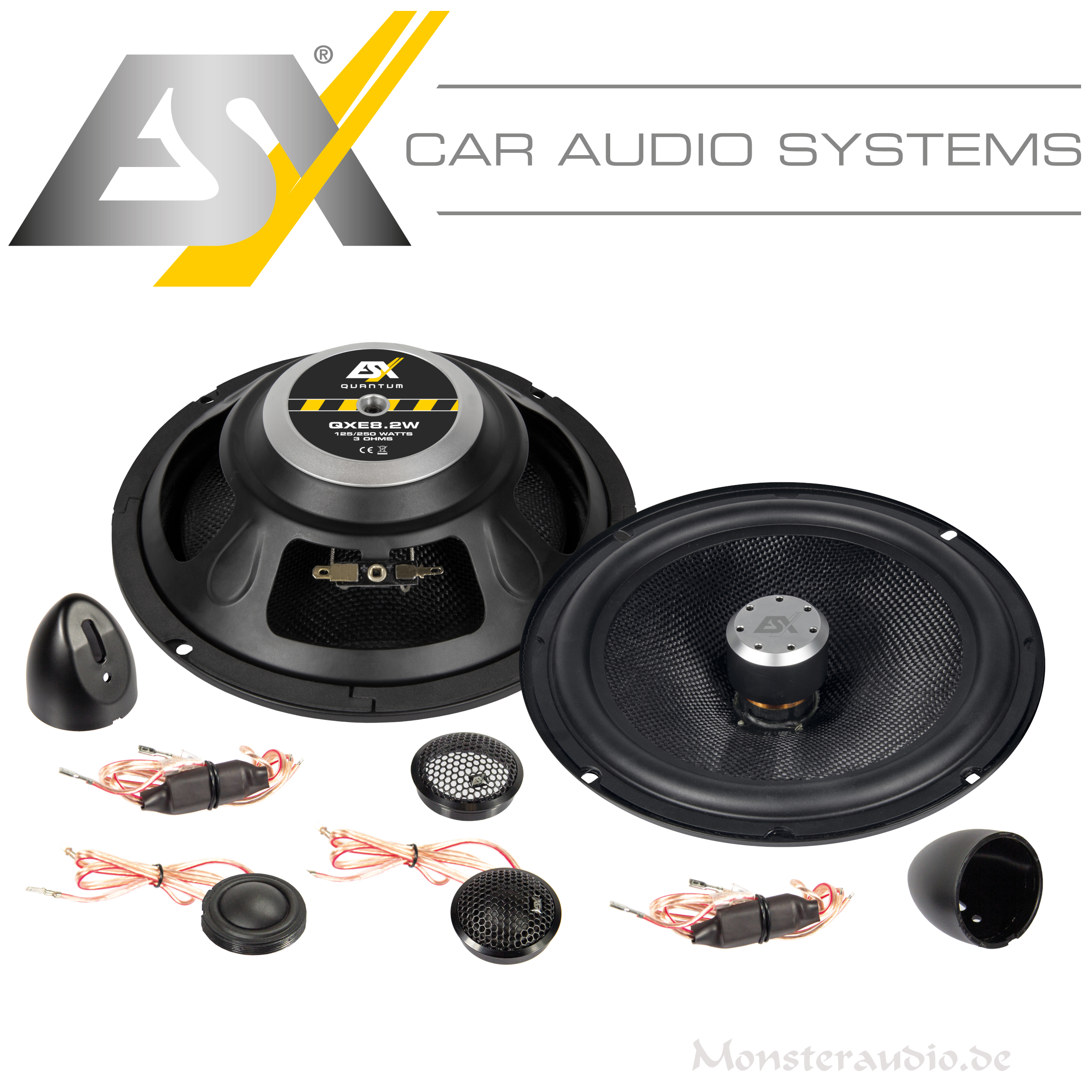 Immer häufiger passen nicht nur 16,5 cm Basslautsprecher in die vorderen Türen, sondern auch richtig große Chassis mit 20 cm Durchmesser. Da die einfache Faustformel “mehr Membranfläche = mehr Bass“ auch hier gilt, kann mit den neuen 8-Zoll ESX Tieftönern der QUANTUM QXE Serie aus den Türen schon richtig viel Bass geholt werden. Sie passen in gängige 20 cm Adapter für viele Automodelle, wie z.B. VW, Audi oder auch Tesla.