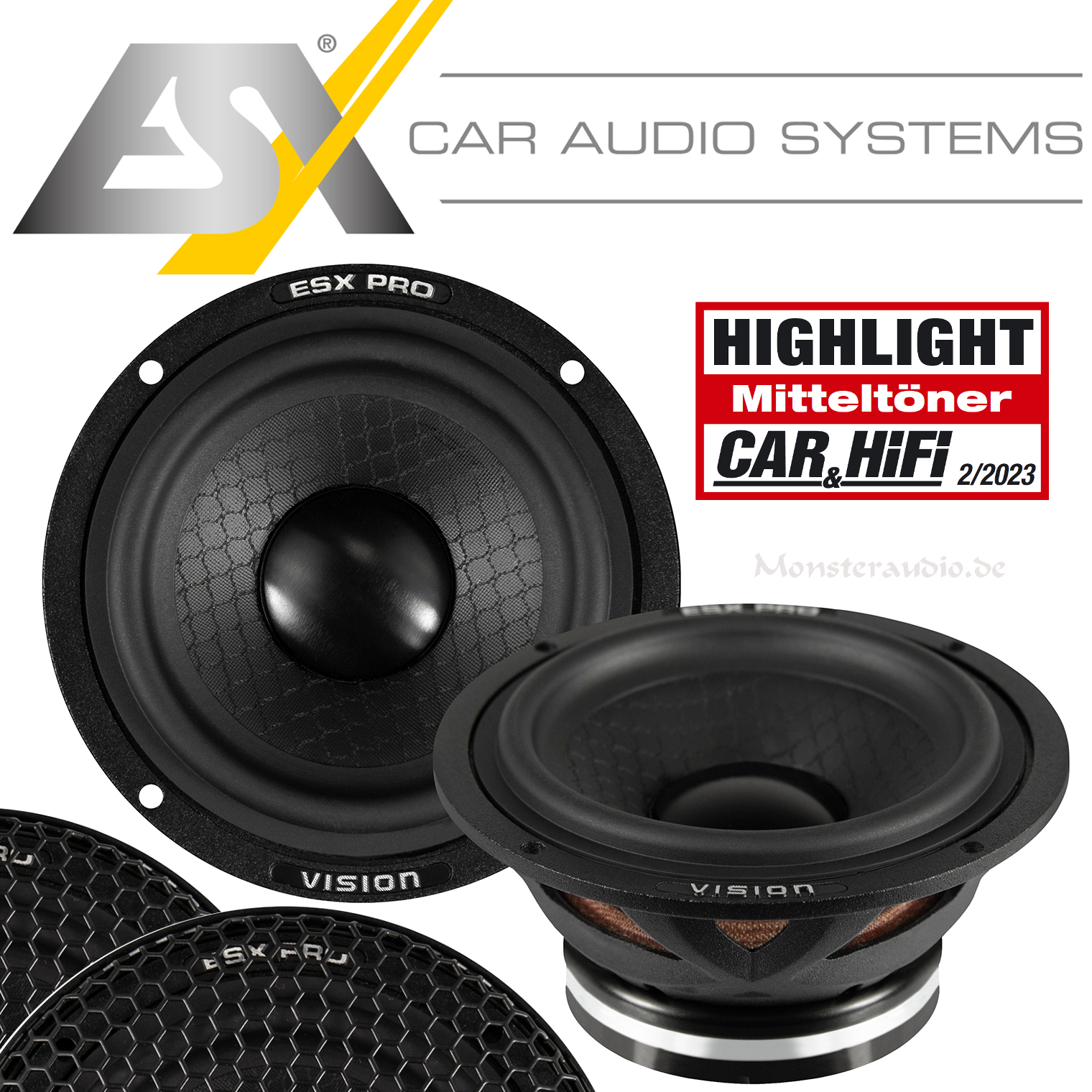 Wer den bestmöglichen Sound in sein Fahrzeug zaubern will, baut sein Wunschsystem idealerweise aus mehreren Komponenten auf. Dies ist eine Aufgabe für Profis, speziell wenn hochwertige Mehrwegesysteme, evtl. mit Mitteltöner, Zusatzsubwoofer oder separate Verstärker zum Einsatz kommen. Genau für so ambitionierte Zwecke haben ESX Ingenieure die High End VISION VXP Komponenten geschaffen, die mit innovativen Materialien, Top-Verarbeitung und exzellenten Parametern aufwarten.