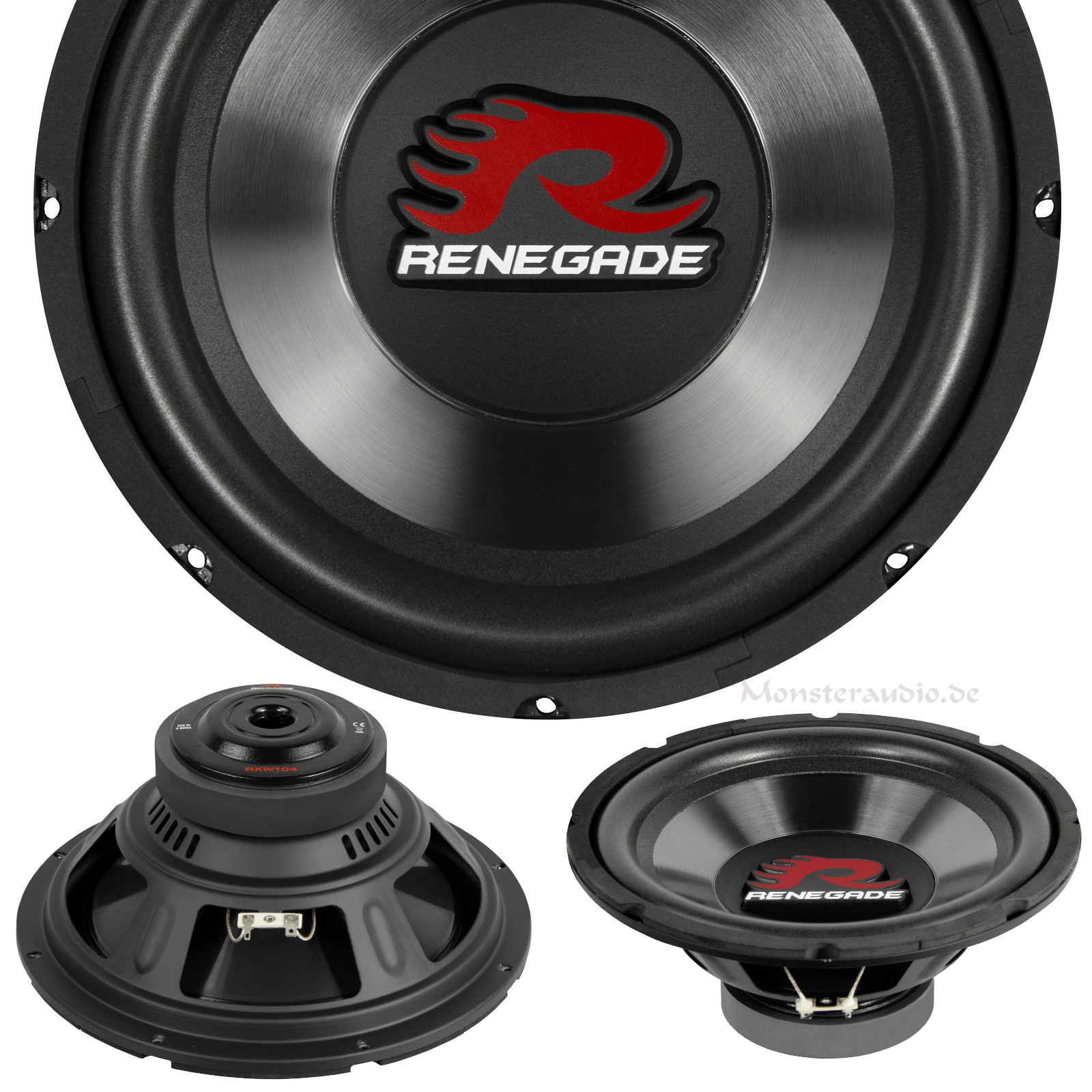 Subwoofer bekannt aus den Renegade RXV-Gehäusesubwoofern mit robusten Stahlkorb, 24 Unzen Magnet und Polypropylene-Membran.