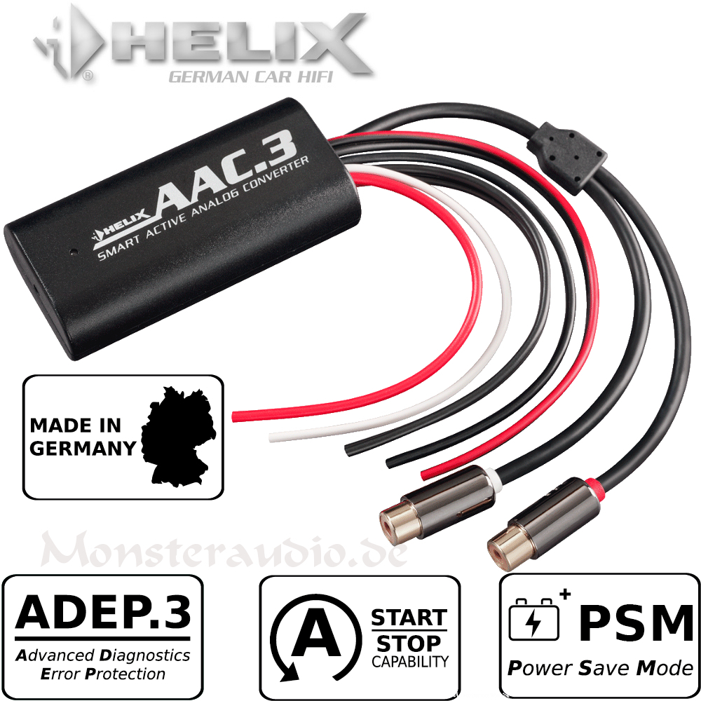 Die Integration von Car-Hifi Komponenten in bestehende Original-Soundsysteme wird durch die intelligenten Radio-Diagnosesysteme und fehlende Vorverstärkerausgänge am Werksradio immer komplexer. Hier kommt der neue Helix AAC.3 ins Spiel.
