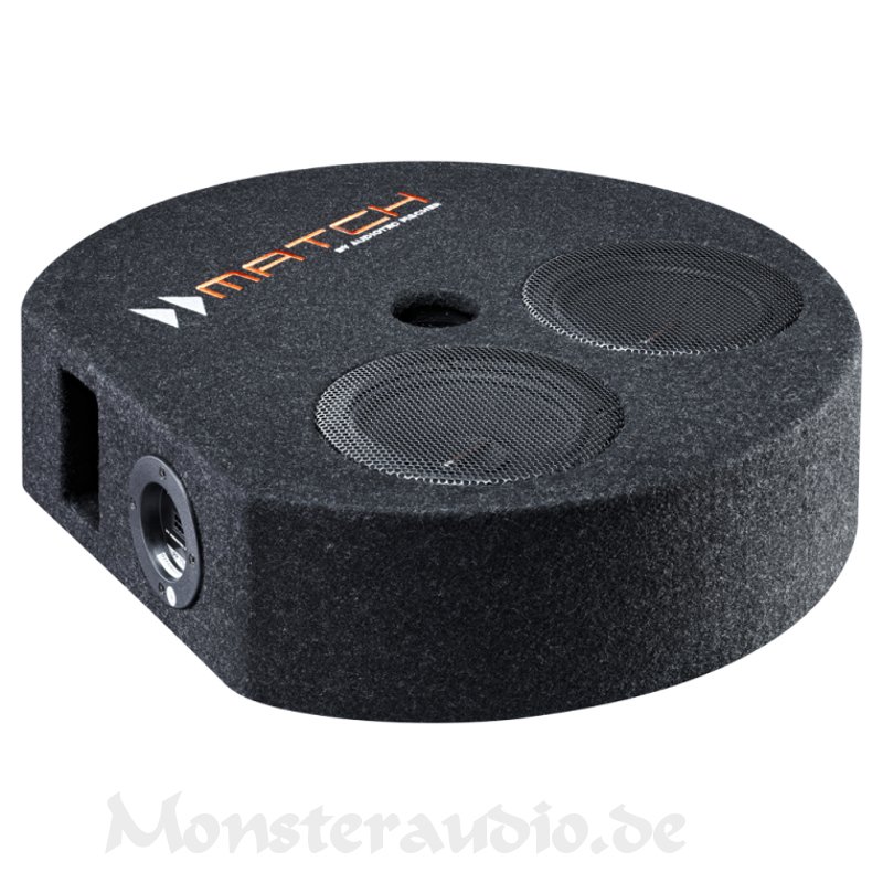 Diese Subs sind das beste Beispiel dafür, dass ein intelligentes Zusammenspiel von Verstärker und Lautsprecher dank aufwändiger DSP-Technologie auch bei extrem kompakten Abmessungen für satten, fühlbaren Bassdruck im Fahrzeug sorgen kann. Das Geheimnis liegt in der peniblen Abstimmung der Komponenten aufeinander – nur im Team mit den MATCH Plug & Play Verstärkern können diese Subwoofer zur klanglichen Höchstleistung auflaufen.