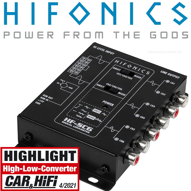 Die Signal-Konverter von HiFonics begeistern mit ihren absolut brillanten Klangeigenschaften. Das Resultat ist kein Zufall, so legten die Entwickler bereits bei der Konzeption größten Wert auf hervorragende technische Daten. Und die können sich wahrlich sehen und hören lassen: Sensationell hohe Signalrauschabstände von 115-121 dB bei gleichzeitig sehr niedrigen Klirrfaktoren von 0,001% zeigen eindrucksvoll, dass die Konverter echte Highlights sind. Sie sind für den Anschluss an herkömmliche Autoradios konzipiert, die bis zu 50 Watt RMS pro Kanal an 2 Ohm leisten.
