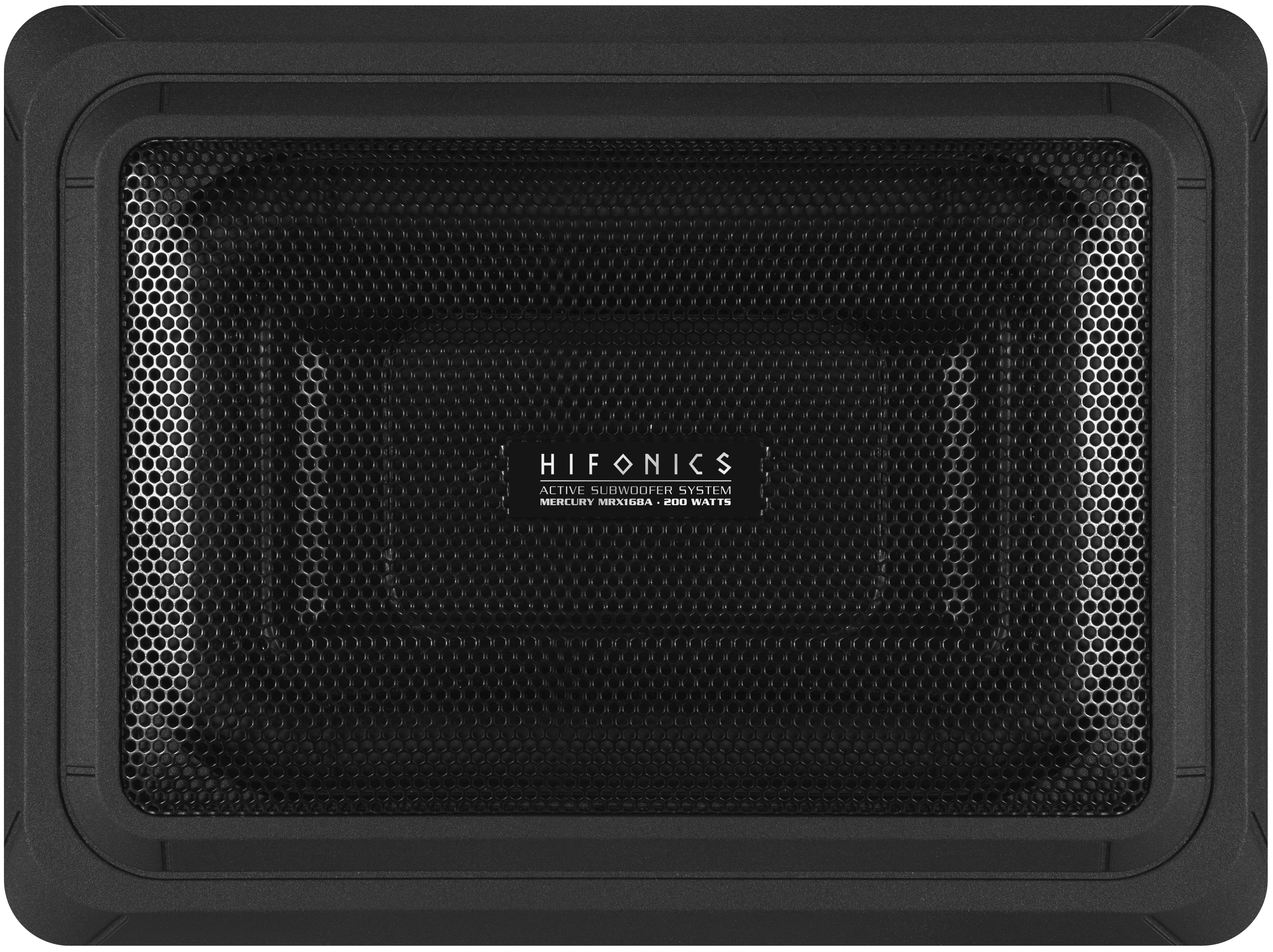 Der MERCURY MRX168A Untersitz-Aktiv-Subwoofer mit den Abmessungen 26 x 19,5 cm unterbietet herkömmliche Subwoofer-Systeme dieser Art um einige Zentimeter. Was das kleine Aktiv-System an druckvollem Bass erzeugt, verblüfft garantiert jeden Zuhörer. In solch kleinen Gehäusen herrscht im Betrieb ein sehr hoher Druck; handelsübliche Membranen würden daher zerstört werden. Aus diesem Grund kommt im MRX168A eine spezielle Aluminium-Membran in Ovalformat zum Einsatz, die selbst höchsten Drücken standhalten kann. Gar nicht klein ist der eingesetzte Class AB-Verstärker. Mit gut 100 Watt RMS hat er den verbauten Alucone-Woofer mit einer 36 mm Schwingspule und kräftigem Antrieb perfekt im Griff. Durch den kurzschlussfesten 10-Pin Stecker kann das Aktiv-System bei Bedarf auch mal ganz schnell und einfach ausgebaut werden.