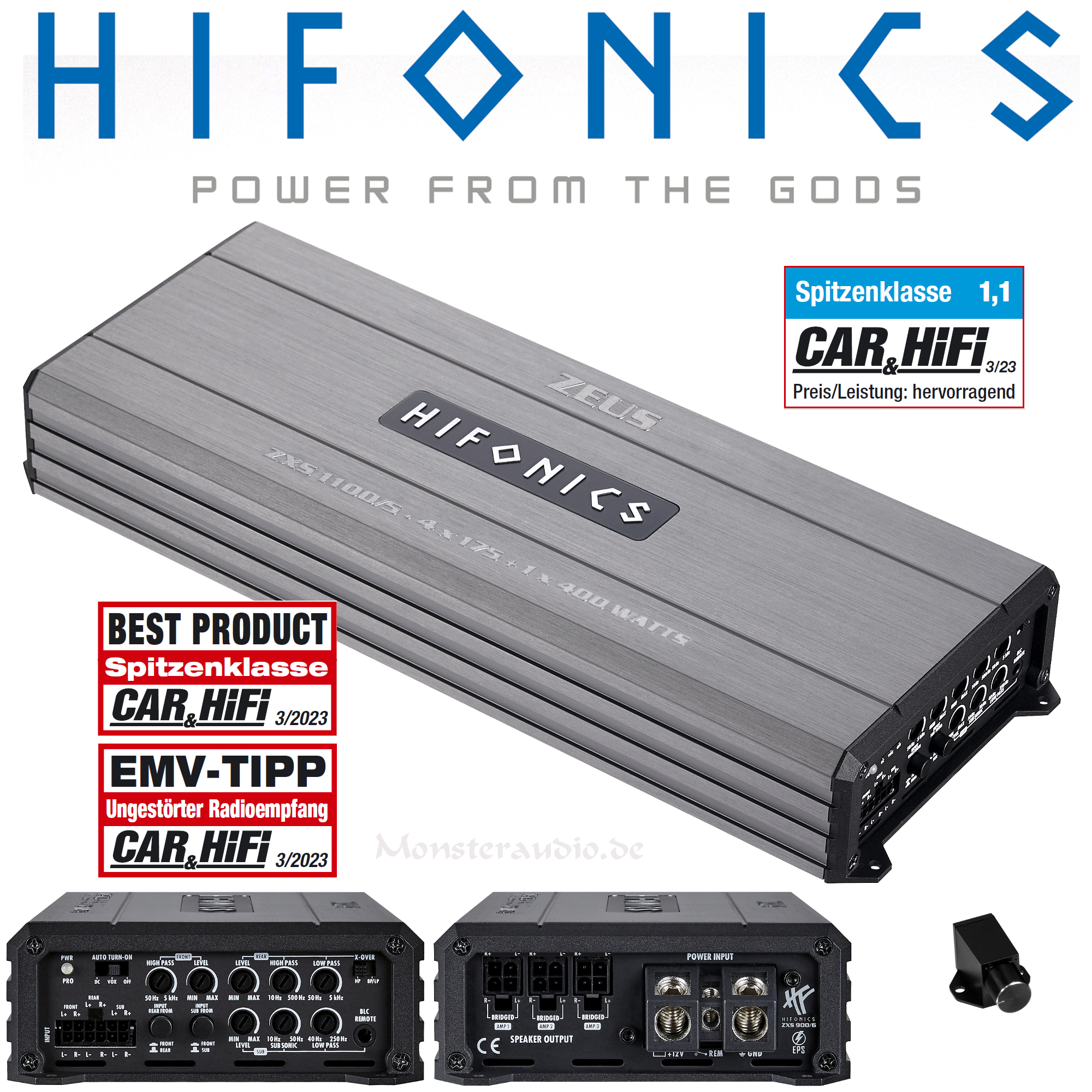 Alle ZXS Modelle haben selbstredend nebst regelbaren Frequenzweichen neueste Features wie eine Einschaltautomatik an Bord, die man zur Anbindung an moderne Fahrzeugelektrik braucht. Die Hochpegel-Eingänge sind mit fortschrittlichem EPS ausgestattet, damit Fehlermeldungen in Fahrzeugdiagnose-Systemen unterdrückt werden. Emissionsarme HiFonics IFT-Digitaltechnik sorgt für ungestörten Radioempfang.