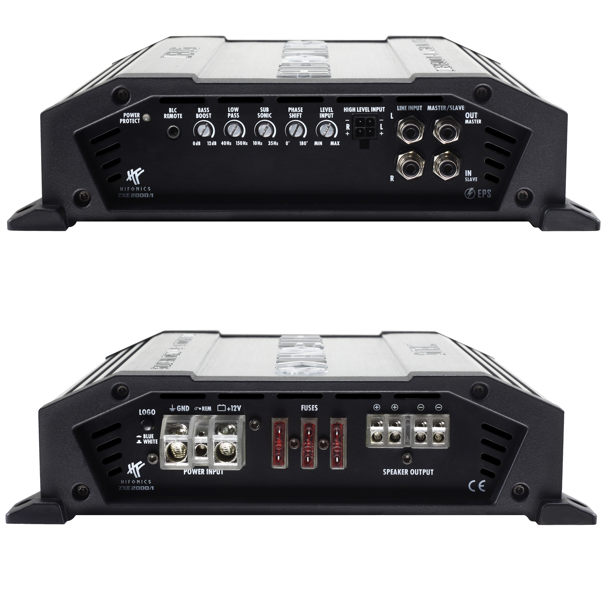 Die neuen HiFonics ZEUS EVOLUTION ZXE Verstärker besitzen schon ab Werk hochfunktionale Features wie Hochpegel-Eingänge mit EPS, Einschaltautomatik, Start-Stopp-Fähigkeit, voll regelbare Weichen, Bandpass-Funktion, Bass-Pegelfernbedienung und sind damit perfekt für den multiplen Einsatz in modernen Car Hifi Systemen gewappnet. Bei der Auswahl der Komponenten im Innern wurde ebenfalls nicht gespart: So kommen aufwendige und teure NE5532 Operationsverstärker zum Einsatz, die normalerweise nur in viel teureren Modellen zu finden sind. Das Resultat verblüfft nicht nur durch hohe Leistung, sondern auch durch unglaublich feinen Klang. Der gebürstete, in grau gehaltene Alu-Kühlkörper ist schon eine Augenweide an sich. Die schwarzen Endcaps aus Aluminium-Guss unterstreichen zusätzlich die Wertigkeit der ZEUS EVOLUTION ZXE Serie. Optisches Highlight ist das beleuchtete HiFonics-Logo, das sich von blau auf weiß umschalten lässt. Aber nicht nur das Logo ist beleuchtet, auch die Strom- und Lautsprecheranschlüsse strahlen in HiFonics blau und sorgen für ein weiteres optisches Highlight.
