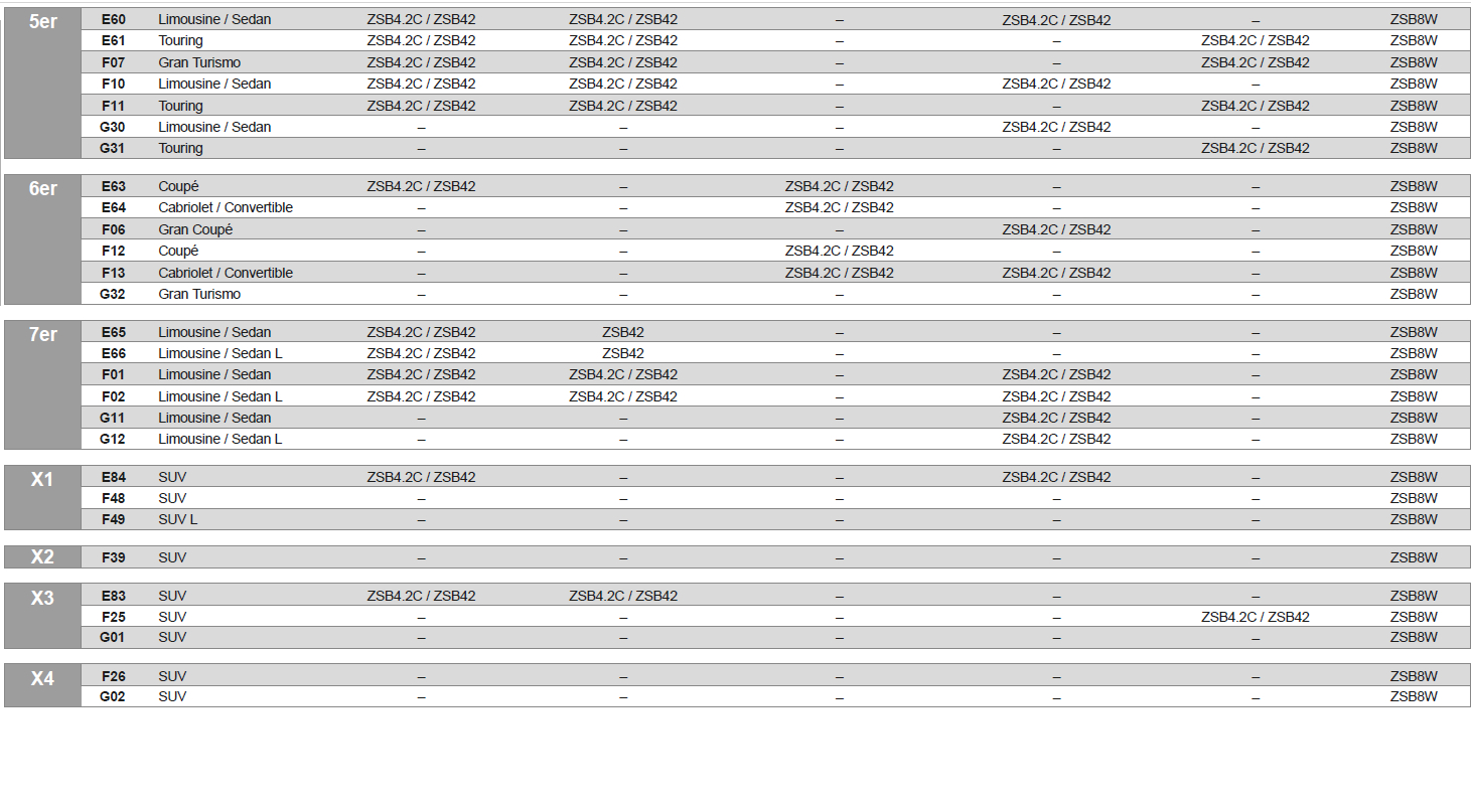 E81 / E82 / E87 / E88 / E90 / E91 / E92 / E93 / E60 / E61 / F07 / F10 / F11 / E63 / E65 / E66 / F01 / F02 / E84 / E83 / E70 / E71 / E89