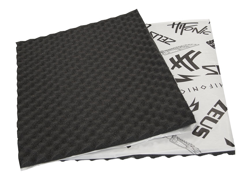 Mit den ZEUS ZSQ7 und ZSQ15 bietet HiFonics hierfür zwei Schaumstoffe unterschiedlicher Stärke an, welche die Innenraumakustik in Fahrzeugen optimieren. Das Material lässt sich auf 1 bzw. 2 mm zusammen drücken und ist somit sehr gut zu verarbeiten. Je nach Anwendung dämpft es Bleche oder kann leicht zum Schwingen neigende Flächen und Teile wie ein Stoßdämpfer auf Spannung halten. So kann auch beispielsweise eine weitere Schicht Schaumstoff auf das für Türverkleidungen empfohlene AluButyl zwischen Türblech und Verkleidung geklebt werden, um die Akustik zu verbessern. Heckklappen oder Heckablagen sind oft ab Werk ohne weitere Verkleidung und neigen zur Schallreflektion. Zum Aufkleben eignet sich hierfür das 15 mm starke, genoppte ZSQ15 besonders gut. Beide ZSQ Schaumstoffe sind selbstklebend, wodurch sie sich auch gut dafür eignen, um lose verlegte Kabel ruhig zu stellen.