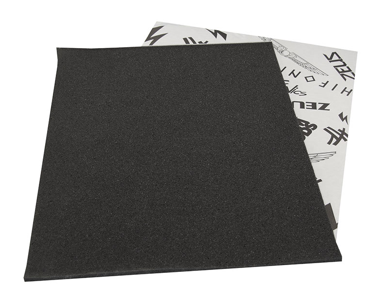 Mit den ZEUS ZSQ7 und ZSQ15 bietet HiFonics hierfür zwei Schaumstoffe unterschiedlicher Stärke an, welche die Innenraumakustik in Fahrzeugen optimieren. Das Material lässt sich auf 1 bzw. 2 mm zusammen drücken und ist somit sehr gut zu verarbeiten. Je nach Anwendung dämpft es Bleche oder kann leicht zum Schwingen neigende Flächen und Teile wie ein Stoßdämpfer auf Spannung halten. So kann auch beispielsweise eine weitere Schicht Schaumstoff auf das für Türverkleidungen empfohlene AluButyl zwischen Türblech und Verkleidung geklebt werden, um die Akustik zu verbessern. Heckklappen oder Heckablagen sind oft ab Werk ohne weitere Verkleidung und neigen zur Schallreflektion. Zum Aufkleben eignet sich hierfür das 15 mm starke, genoppte ZSQ15 besonders gut. Beide ZSQ Schaumstoffe sind selbstklebend, wodurch sie sich auch gut dafür eignen, um lose verlegte Kabel ruhig zu stellen.