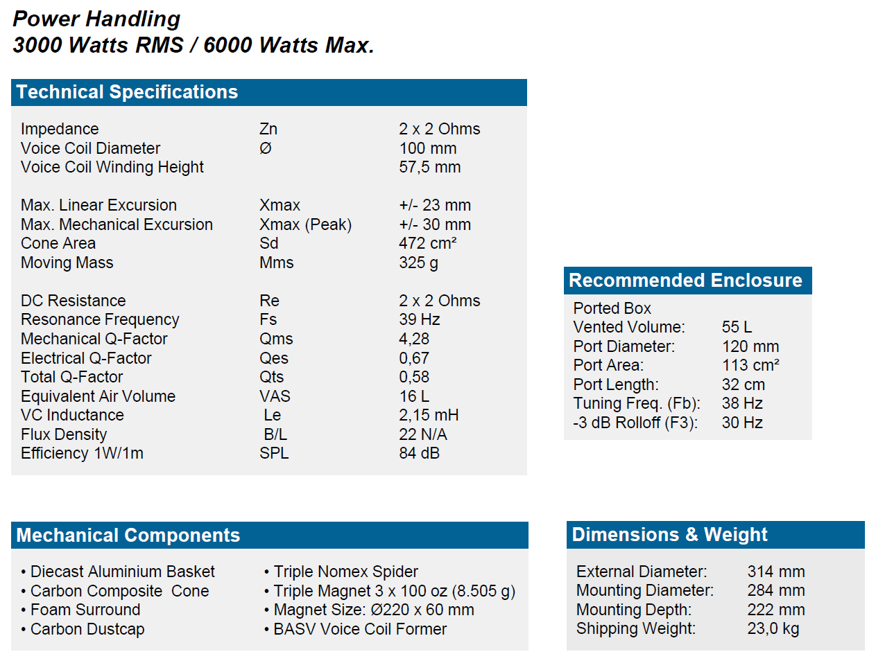 Auch thermisch sind die Zeus-Subwoofer bestens gerüstet: So werden im 10 Zoll Woofer bereits 76 mm große, ab dem 12 Zoll Modell sogar gigantische 100 mm große Schwingspulen. Mit unglaublichen 58 mm Wickelhöhe können die Membranen so einen linearen Hub von +/- 23 mm machen. Die Schwingspule ist aus speziellem pi-CCAR Flachdraht gefertigt, das ist ein Aluminiumflachdraht mit Kupferummantelung, der Gewicht spart und zudem bis 240 Grad hitzebeständig ist. Alles in allem Zutaten, welche die außergewöhnliche Qualität der Tieftöner eindrucksvoll unter Beweis stellen. Wer auf der Suche nach ultimativen Pegelwoofern ist, kommt an der ZEUS EXTREME ZXT Serie nicht vorbei.