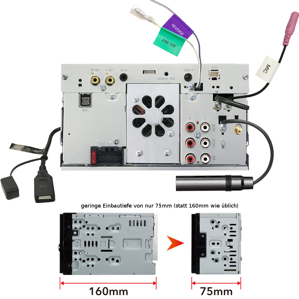 Separater Anschluss für Rückfahrkamera spezieller Cinch Videoeingang (RCA)
