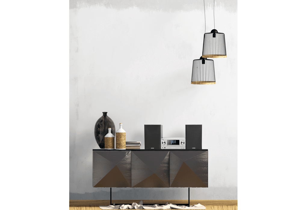 Eine Endstufe mit 2 x 30 Watt Ausgangsleistung sorgt im Zusammenspiel mit den kompakten 2-Wege-Bassreflex-Lautsprechern für ein homogenes Klangbild. Dabei erlauben fünf vorprogrammierte EQ-Kurven individuelles Soundtuning.