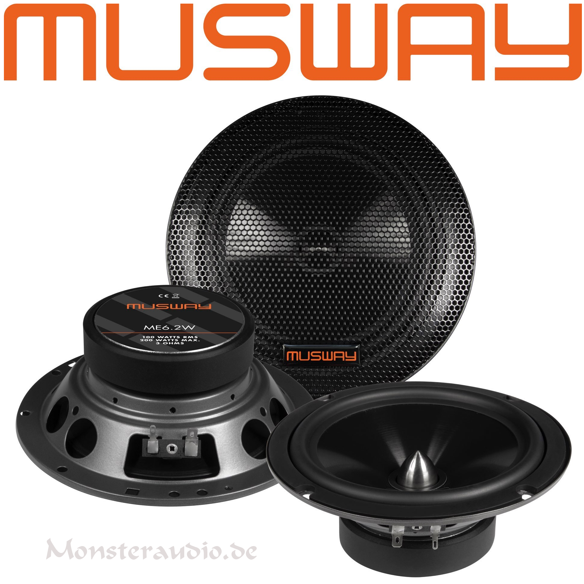 Die ME Lautsprecher sind die Einstiegsmodelle von MUSWAY. Selbst diese sind schon mit kräftigen Magnetantrieben ausgestattet, die unter anderem eine hohe Belastbarkeit mit bis zu 200 Watt Musikleistung ermöglichen. Polypropylen-Membranen mit Gummisicken garantieren einen tiefen und kräftigen Bass und eine sehr hohe Langlebigkeit. Für ein optimales Abstrahlverhalten wurden in die Basslautsprecher von ME6.2C, ME5.2C und ME6.2W Phase-Plugs eingesetzt. Der 25 mm Gewebe-Neodym-Hochtöner hat nicht nur hervorragende Klangeigenschaften, sondern ist auch noch besonders flexibel einsetzbar, da der äußere Plastikring abnehmbar ist und sich dadurch der Durchmesser auf kompakte 43,5 mm verringert – passend für das Spiegeldreieck oder die A-Säule. Für einfache Verbaubarkeit sorgen die für den Hochton- und Basszweig getrennten Inline-Frequenzweichen, die kaum Platz beanspruchen.