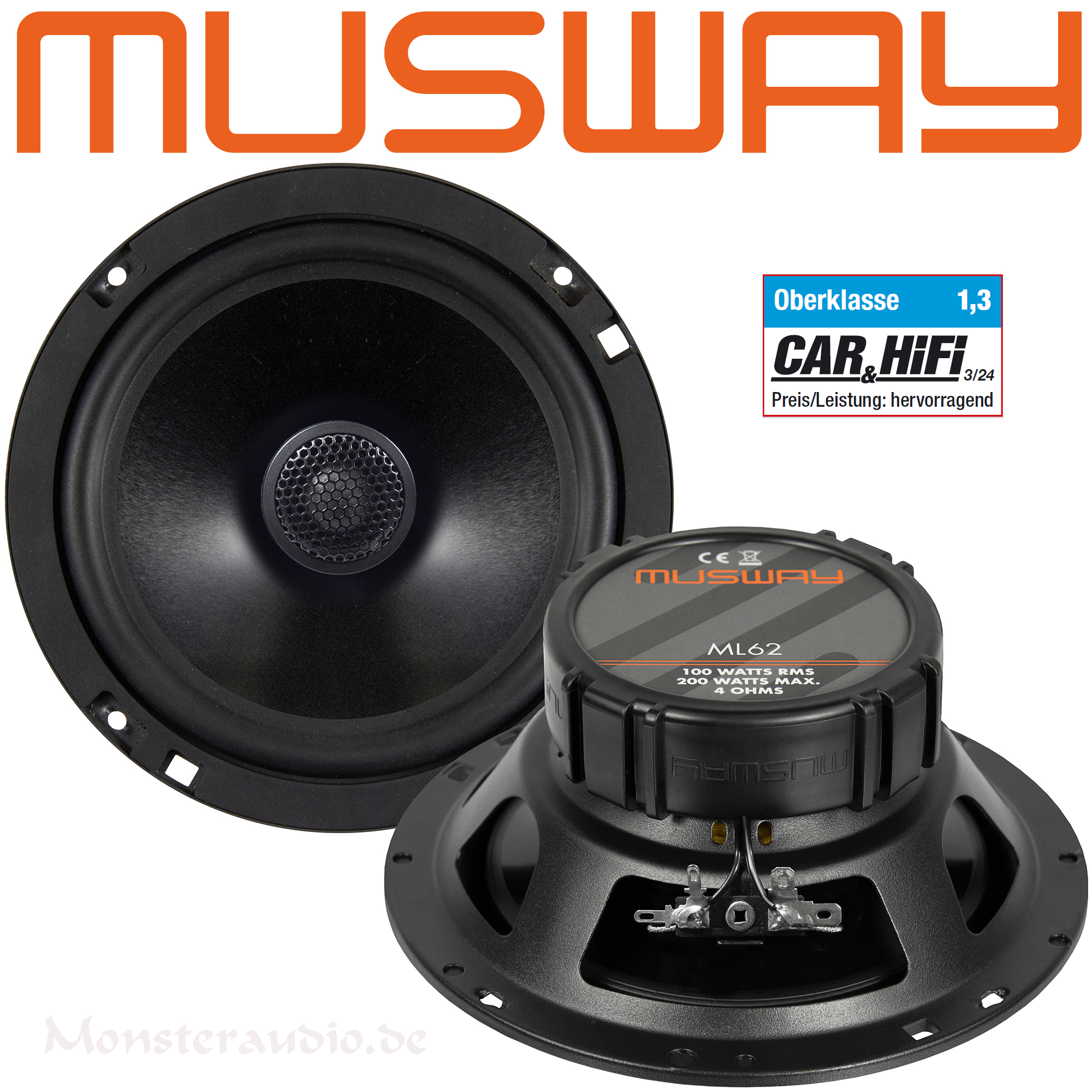 Mit den neuen 16,5 cm 2-Wege Koax-Lautsprechern ML62 lässt sich jedes Car Audio System wunderbar komplettieren. Diese verfügen über vollwertige 20 mm Gewebehochtöner, die für besten Klang bekannt sind. Die hochwertigen, schwarz eloxierten Alu-Membranen kommen auch in den ML62 Koax-Modellen zum Einsatz.