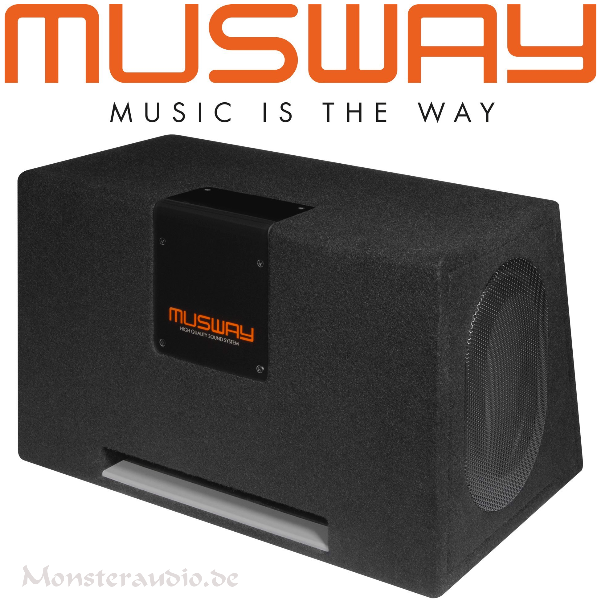 Die stabil konstruierten MDF-Gehäuse sind mit hochwertigem schwarzem Teppich bezogen und fügen sich harmonisch und dezent in jedes Fahrzeuginterieur ein. Weiterhin sind ohne Ausnahme alle Modelle mit QUICK CONNECT Anschlussbuchsen ausgestattet und können blitzschnell per optionalem Anschlusskabel beispielsweise an die MUSWAY M6 und deren QUICK CONNECT Port angeschlossen werden. Selbstverständlich können die MUSWAY Subwoofer-Systeme auch konventionell an herkömmliche Push-Pin Terminals angeschlossen werden.