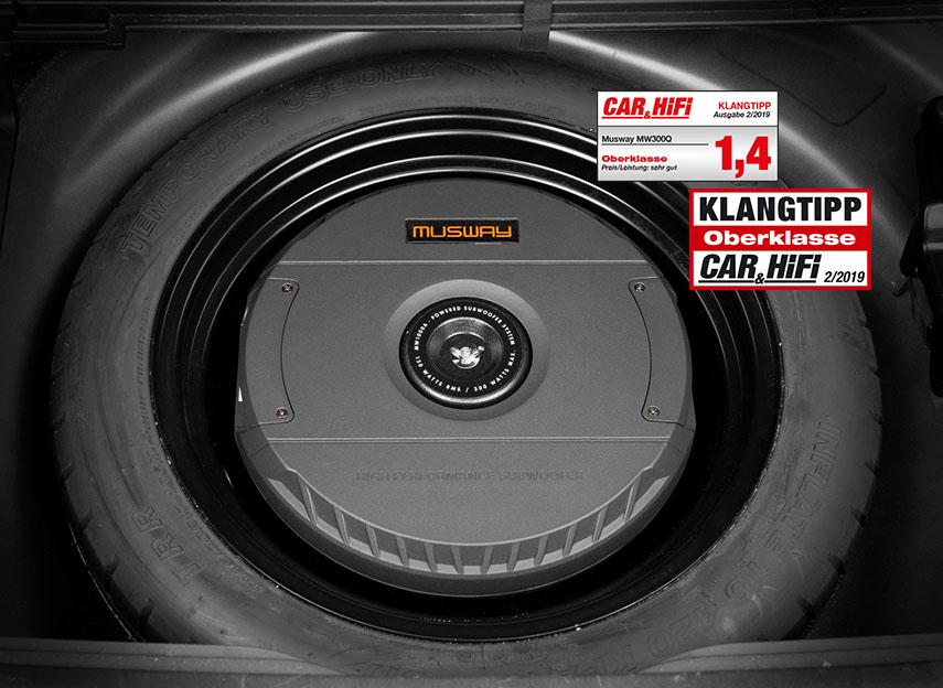 Das in ein solides Aluminiumgehäuse verbaute MW1000A System ist mit einem großen 28 cm (11“) Tieftöner ausgestattet und passt Dank der geringen Einbautiefe von nur 12 cm in nahezu jede Reserveradmulde bzw. sogar in die Felge eines Notrads. Das Modell ist mit Hochpegel-Eingängen und automatischer Einschaltfunktion versehen und kann somit perfekt in bestehenden Soundsystemen oder in Werksanlagen für die fehlende Basspower sorgen. Für die Kontrolle des Basspegels vom Fahrersitz aus, ist das Systeme mit Kabel-Fernbedienung ausgestattet und es kann sogar noch zusätzlich der Tiefpassfilter sowie die Phasenlage gesteuert werden.