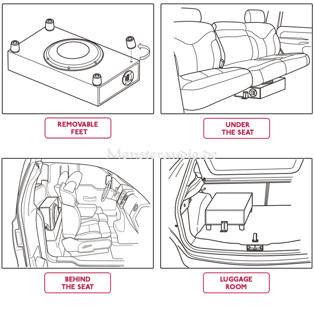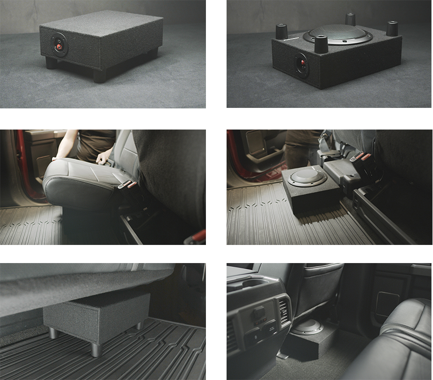 Dieser Subwoofer verfügt über ein vollständiges Gitter und eine nach unten gerichtete Struktur zum Schutz des Kegels und kann im Innenraum Ihres Fahrzeugs installiert werden. Dies vereint tiefe, kraftvolle Bässe mit nahtloser physischer und elektrischer Integration und verbessert vor allem die Akustik im Fahrzeug.