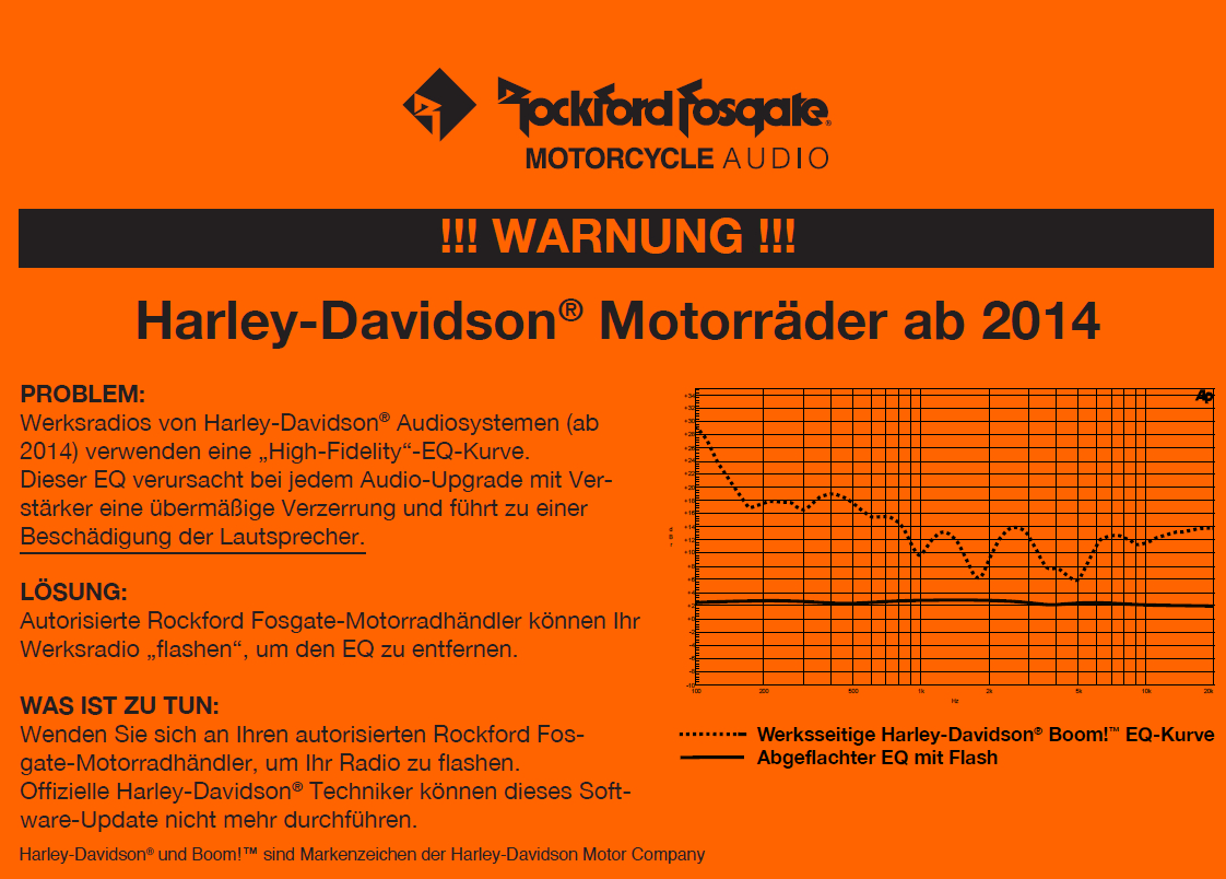 Die T-Kabelbaum-Integration unterstützt die vordere/hintere Fadersteuerung (erfordert „Rockford Fosgate 2014+ All Bikes“-Flash)