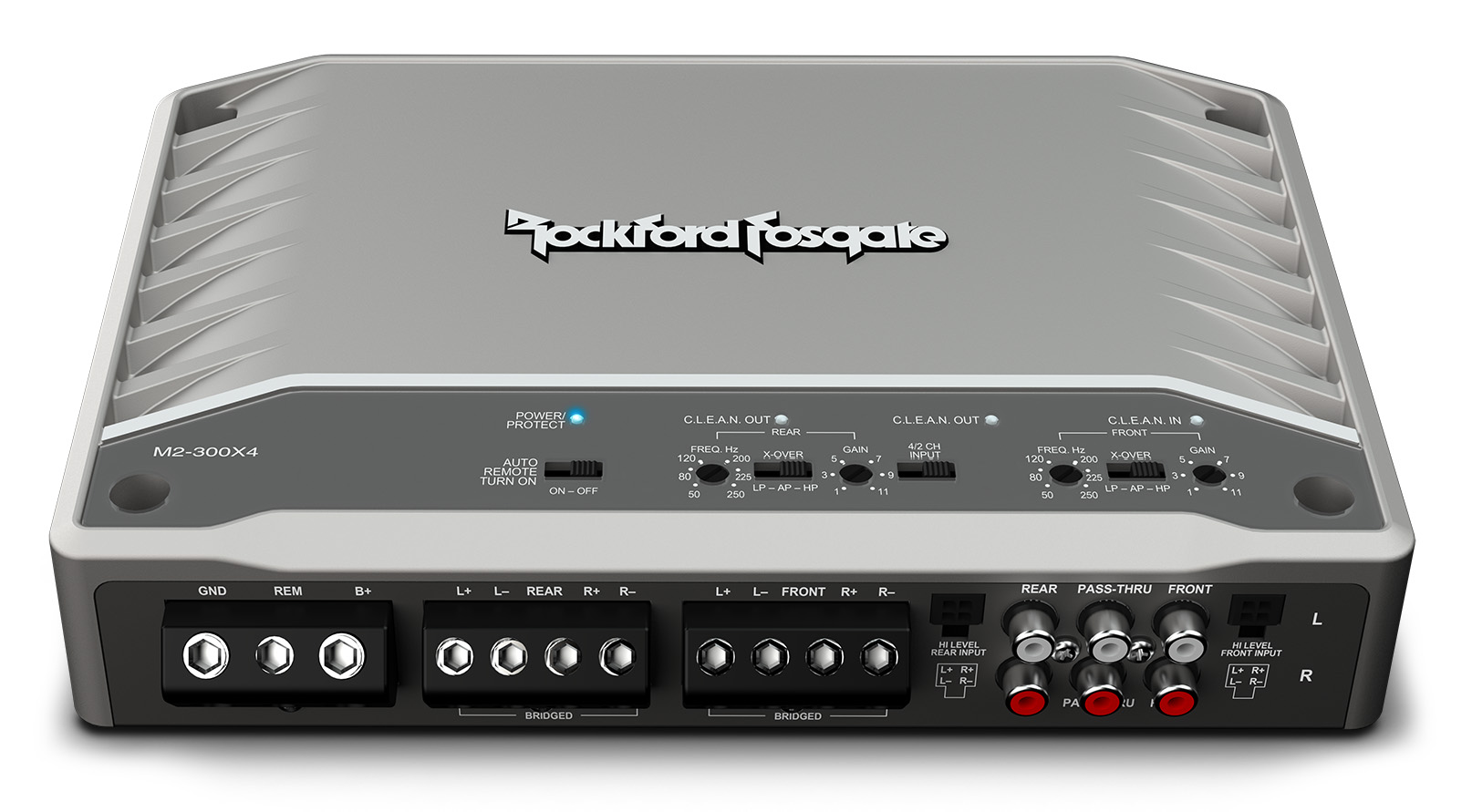 Der M2-300X4 Element Ready™-Verstärker wurde entwickelt, um den Elementen zu trotzen. Er ist ein 300-Watt-Vollbereichsmodell der Klasse D, das mit 4 Ω oder 2 Ω Stereo und 4 Ω Bridged/Mono betrieben werden kann.