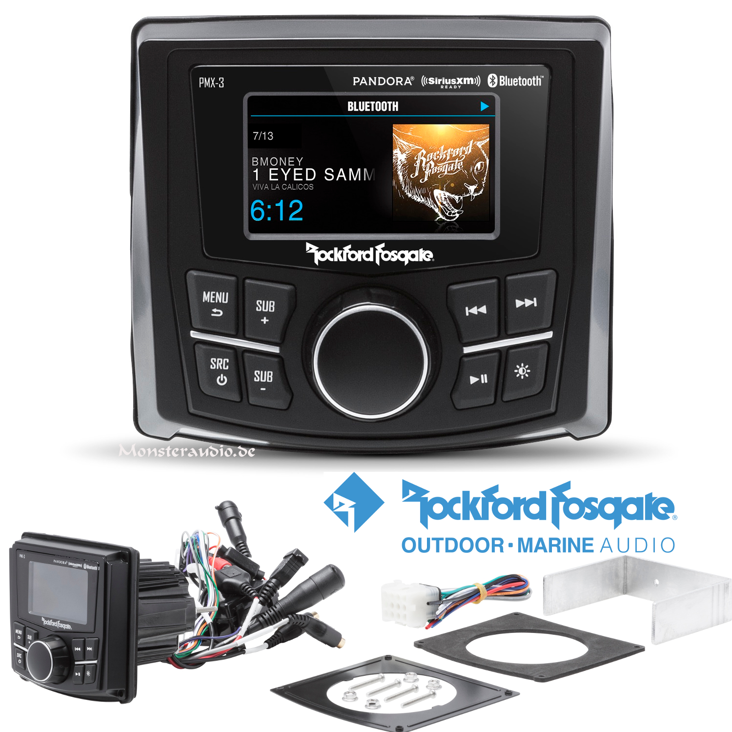 Der PMX-3 ist IPX6-zertifiziert und verwendet einen wasserfesten Drehgeberknopf mit weißer LED-Tastenbeleuchtung und frontseitig angebrachten Sub-Level-Reglern. Darüber hinaus wird dieses Gerät mit Funktionen wie SiriusXM-Tuner-Kompatibilität, Pandora-Steuerungsfunktionen und Bluetooth-Audio-Streaming mit Albumcover-Unterstützung1 zu einer echten Kommandozentrale für jedes System. Die Ausgangsflexibilität wird durch einen internen Verstärker mit 4 x 50 bei 2 Ohm oder RCAs mit vorderen und hinteren/Sub-Ausgängen erreicht, die das Hinzufügen von Aftermarket-Verstärkern für mehr Leistung und Leistung ermöglichen. Android-Geräte mit eingeschränkter Funktionalität. Einzelheiten entnehmen Sie bitte der Bedienungsanleitung.