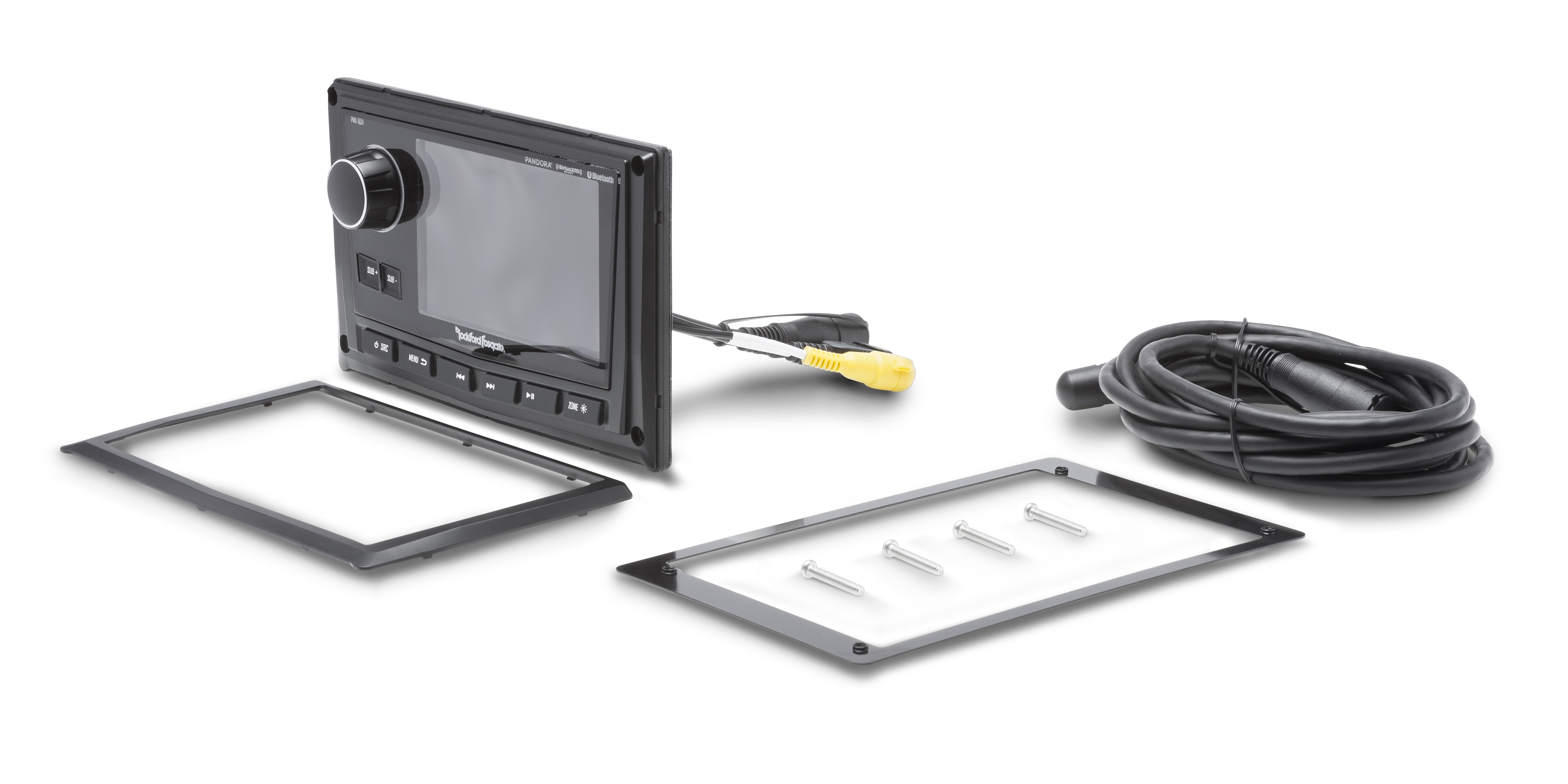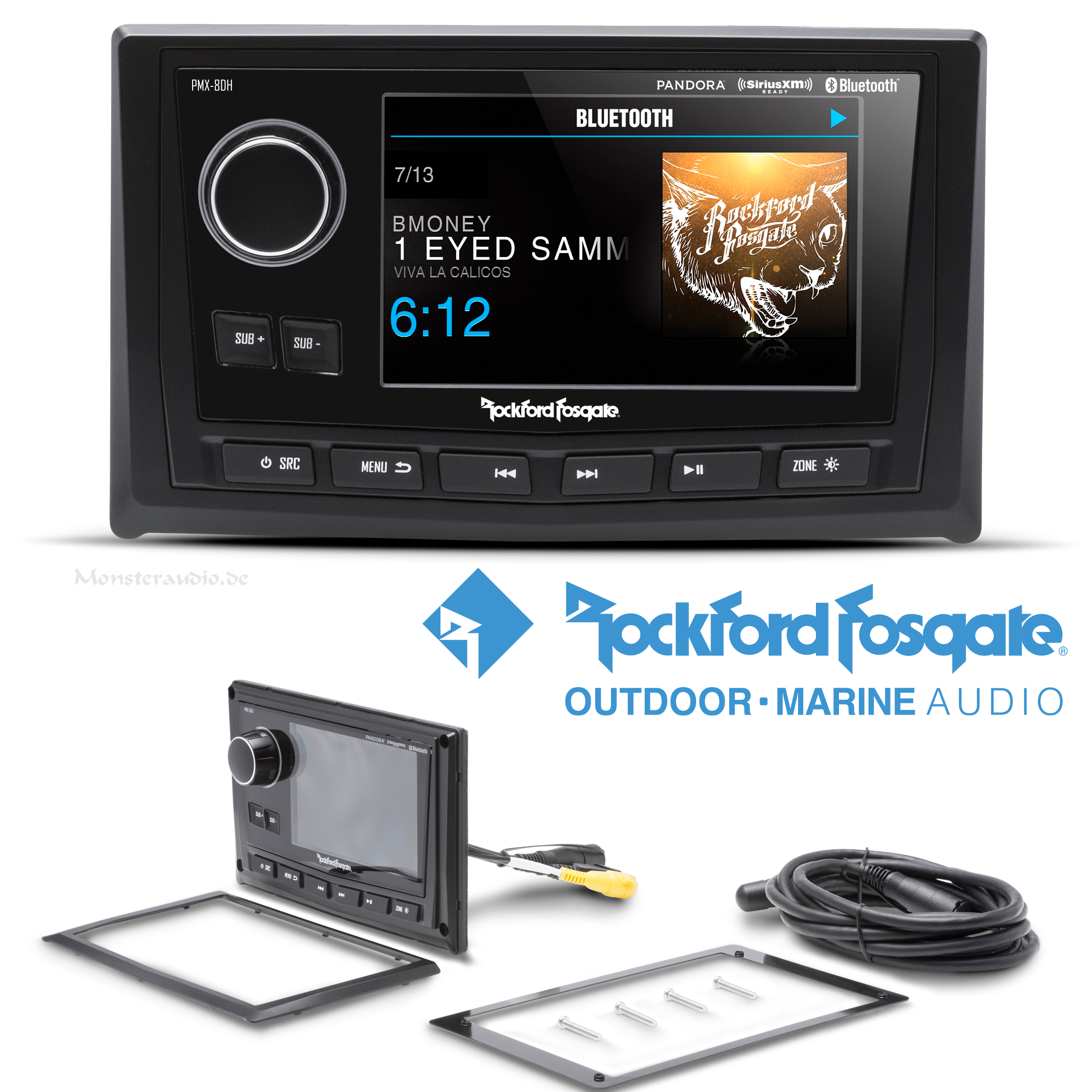 Der PMX-8DH, der mit dem versteckten Medienempfänger PMX-8BB verwendet wird, ist ein kabelgebundener Display-Head-Controller, der Ihnen Zugriff auf alle Funktionen des Empfängers gibt. Es verfügt über ein ultrahelles Farb-TFT-Display für optimale Anzeige auch bei voller Sonne, das optisch nass verklebt ist, um das Eindringen von Staub oder Feuchtigkeit zu verhindern. Es ist IPX6-zertifiziert und verwendet einen wasserfesten Drehgeberknopf mit weißer LED-Tastenbeleuchtung. Darüber hinaus verfügt es über eine Frontplattenbeleuchtung und Sub-Bedienelemente, einen Composite-Videoeingang sowie eine konform beschichtete Leiterplatte für Elementarschutz.