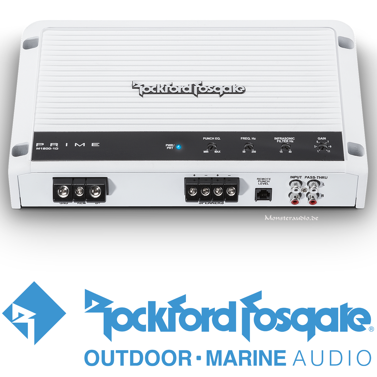Der Prime M1200-1D-Verstärker ist ein hocheffizienter 1200-Watt-Monoverstärker der Klasse D, der speziell für Marine- und Powersport-Anwendungen entwickelt wurde. Der Verstärker verfügt über eine PC-Platine in Marinequalität, und die Klasse-D-Schaltungstopologie ist so effizient, dass sie im Vergleich zu herkömmlichen Klasse-A/B-Verstärkern viel weniger Strom von Ihrem Ladesystem verbraucht.