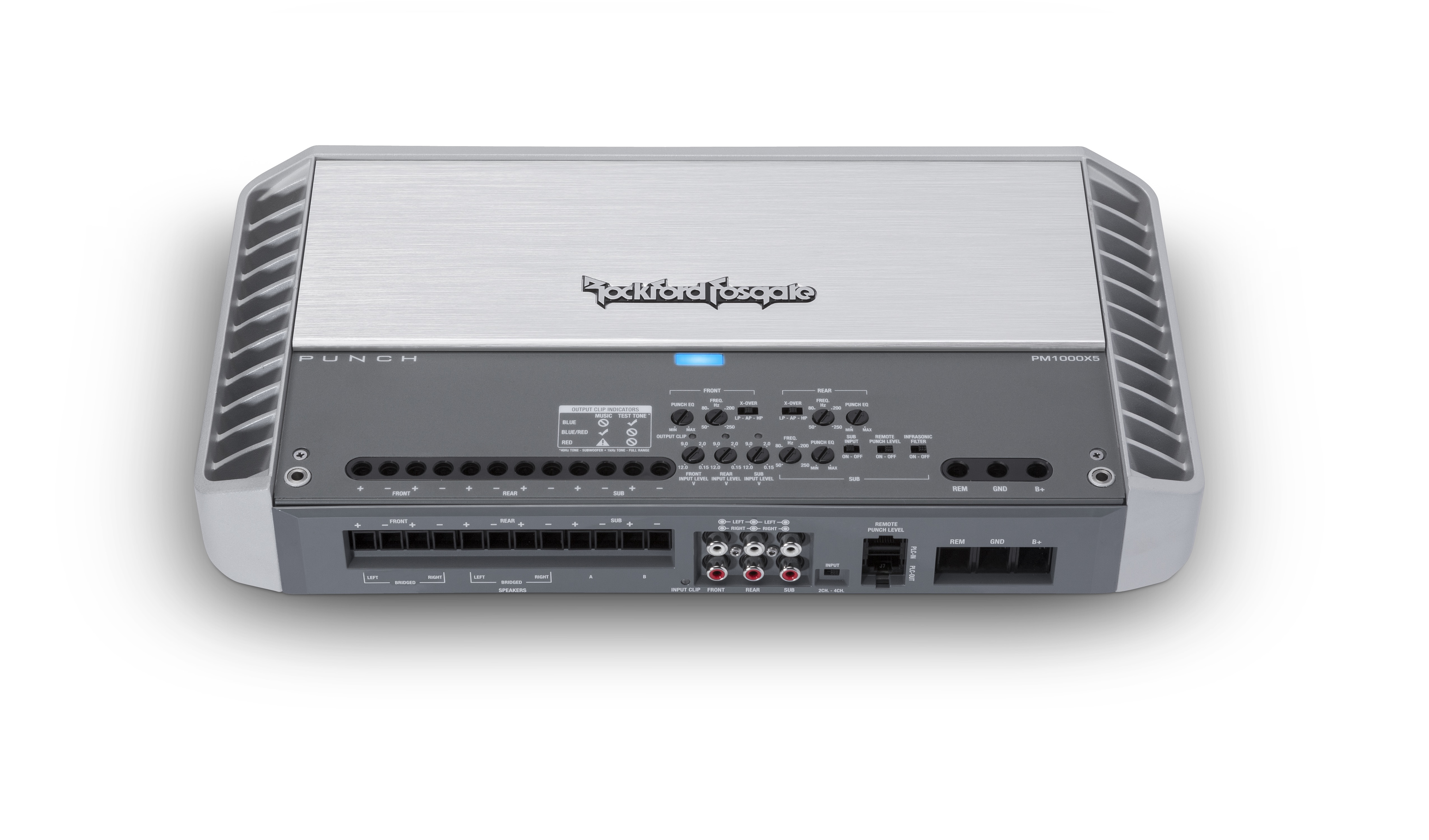 Der PM1000X5 ist ein 1000-Watt-5-Kanal-Verstärker mit hoher dynamischer Leistung unter Verwendung von Class-a/b-Technologie auf den vorderen/hinteren Kanälen, Class-bd für den Subwoofer-Kanal und einer konform beschichteten Leiterplatte, die für Motorsport- und Schiffsanwendungen entwickelt wurde.