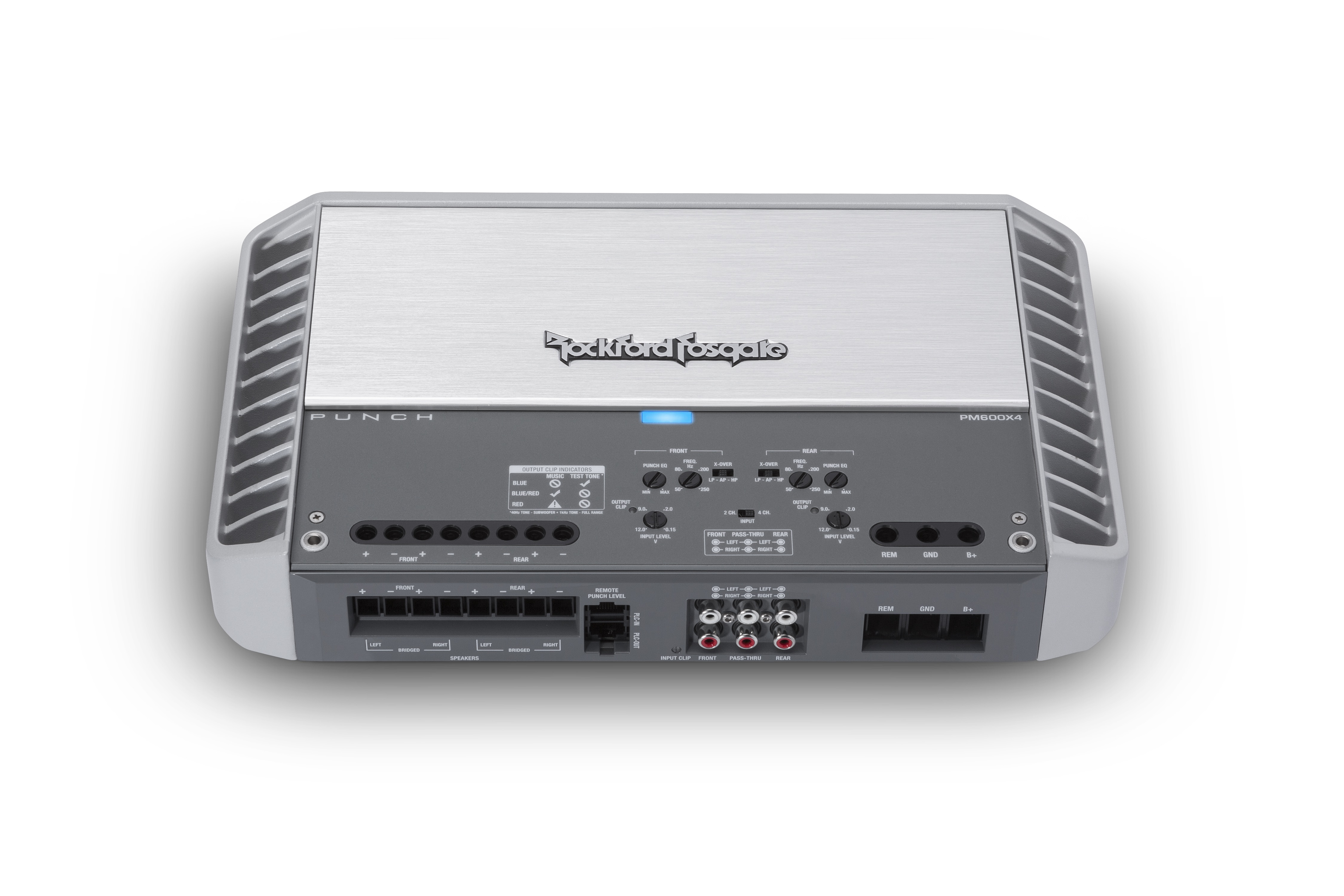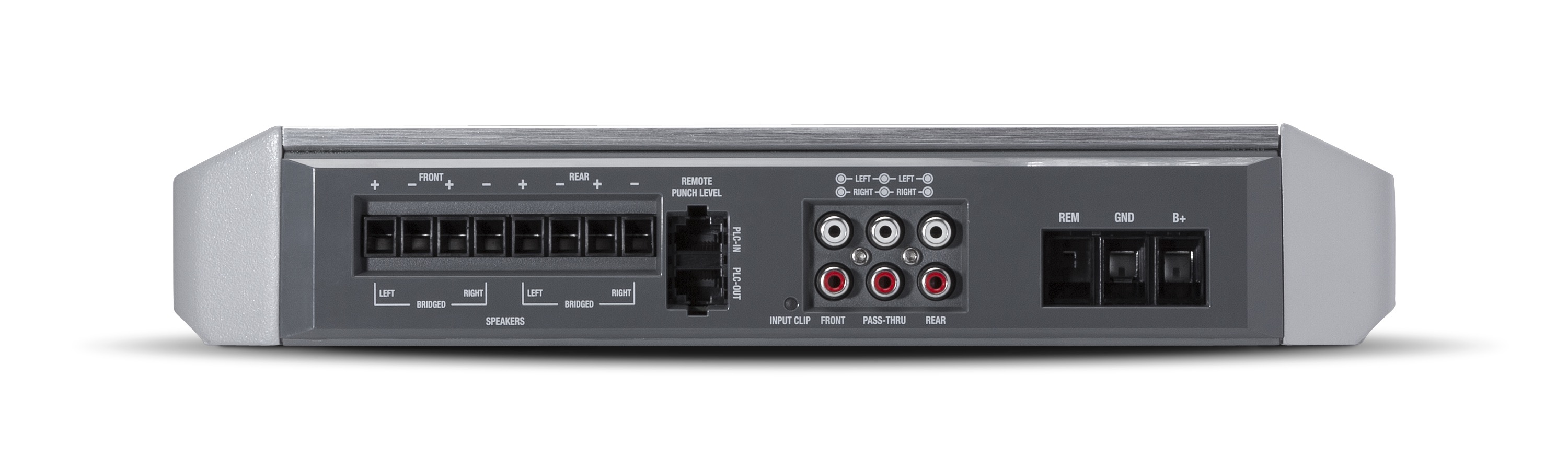 Der Mehrkanalverstärker Punch PM600X4 ist vielseitig, um jede Audiosystemkonfiguration mit Strom zu versorgen. Zusätzlich zum 4-Kanal-Stereomodus können Sie beide Kanäle überbrücken, um einen leistungsstarken 2-Kanal-Verstärker zu erstellen, oder Stereolautsprecher auf der Vorderseite mit Subwoofern auf der Rückseite im 3-Kanal-Modus betreiben. Die variable HP/LP-Frequenzweiche und der integrierte Punch-EQ ermöglichen eine präzise Abstimmung der Bassfrequenzen, und die Pass-Thru-RCA-Buchsen bieten Flexibilität, wenn Ihr System wächst, und halten Y-Adapter auf einem Minimum.
