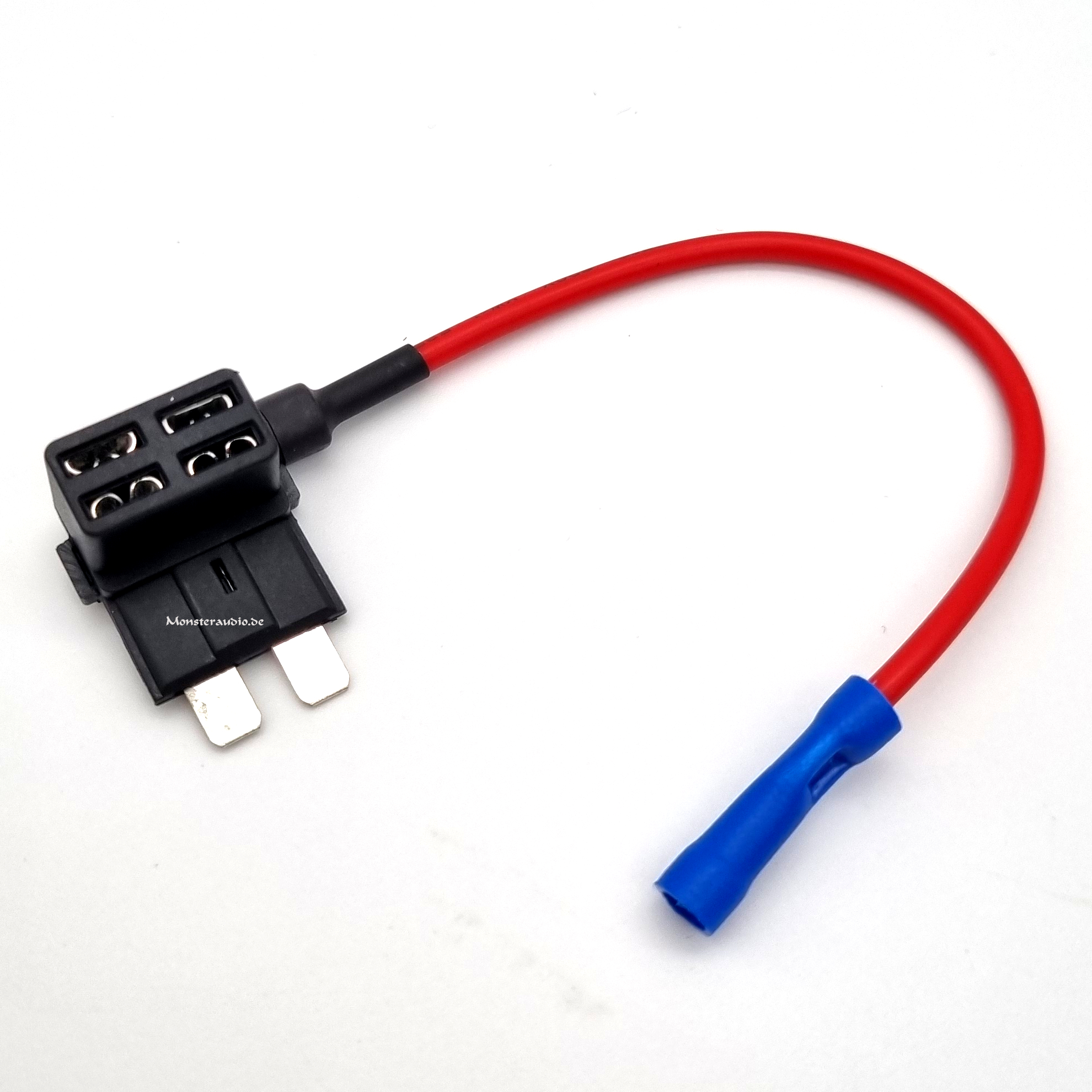 Einbau: Sicherung ziehen und statt dessen Adapter einstecken. Orginalsicherung aufstecken und Sicherung für den Abgriff hinzufügen. Anschluss Gerät über 4mm Rundstecker